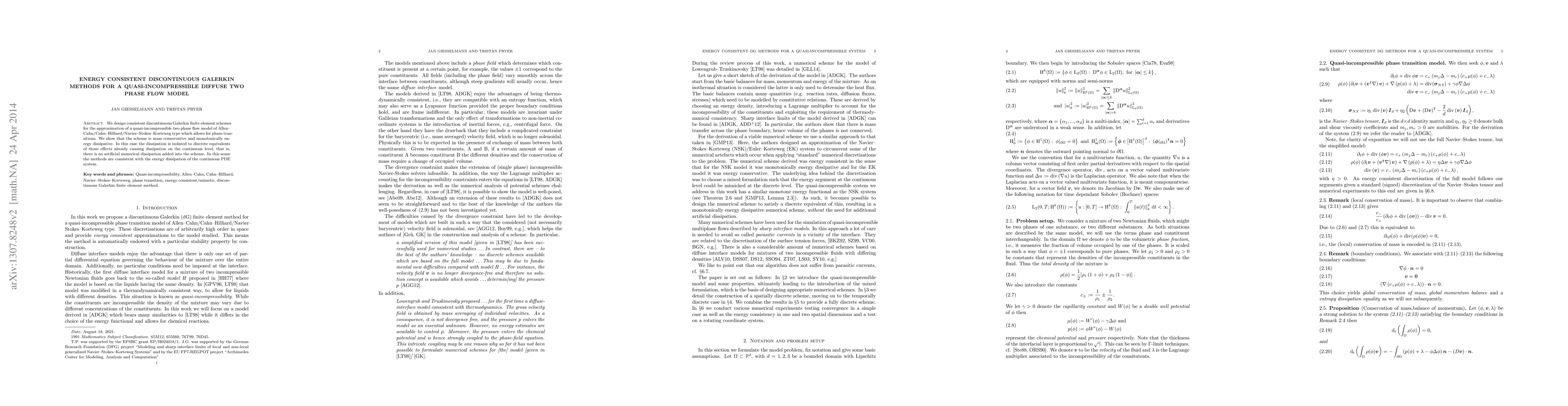 We design consistent discontinuous Galerkin finite element schemes for the approximation of a quasi-incompressible two phase flow model of Allen-Cahn/Cahn-Hilliard/Navier-Stokes-Korteweg type which allows for phase transitions. We show that the scheme is mass conservative and monotonically energy dissipative. In this case the dissipation is isolated to discrete equivalents of those effects already causing dissipation on the continuous level, that is, there is no artificial numerical dissipation added into the scheme. In this sense the methods are consistent with the energy dissipation of the continuous PDE system.