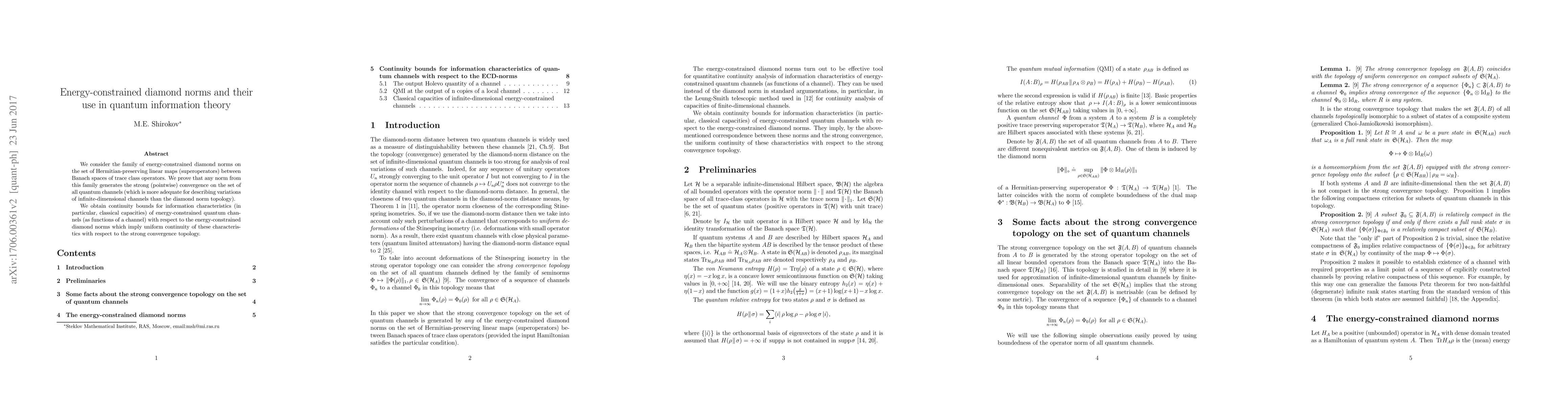 A study on energy-constrained diamond norms for quantum information theory reveals that these norms generate strong convergence for all quantum channels, providing a more accurate description of channel variations. This breakthrough implies improved continuity bounds for information characteristics like classical capacities.