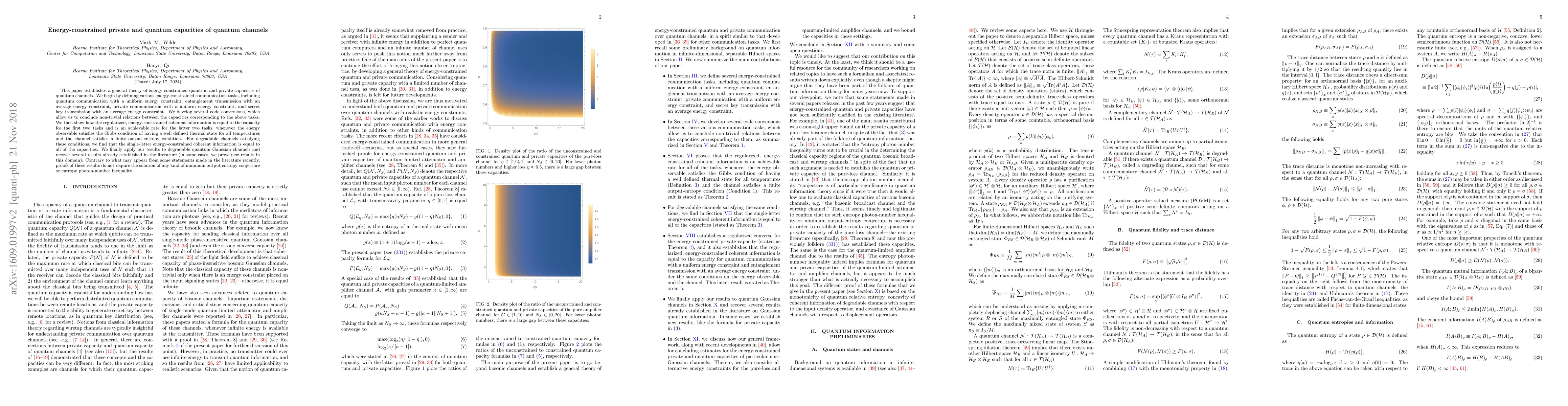This paper develops a theory for energy-constrained quantum communication tasks, establishing non-trivial relations between capacities for quantum, private, and secret key transmission under energy constraints. It proves that the regularized coherent information equals the capacity for certain tasks and provides new results for degradable quantum Gaussian channels without relying on unresolved conjectures.