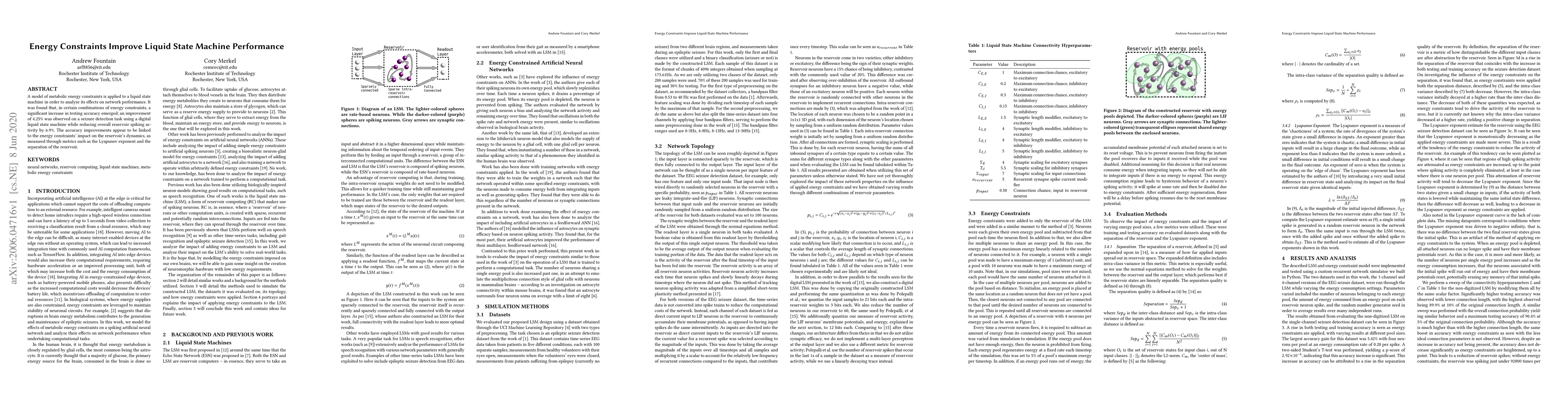 A model of metabolic energy constraints is applied to a liquid state machine in order to analyze its effects on network performance. It was found that, in certain combinations of energy constraints, a significant increase in testing accuracy emerged; an improvement of 4.25% was observed on a seizure detection task using a digital liquid state machine while reducing overall reservoir spiking activity by 6.9%. The accuracy improvements appear to be linked to the energy constraints' impact on the reservoir's dynamics, as measured through metrics such as the Lyapunov exponent and the separation of the reservoir.