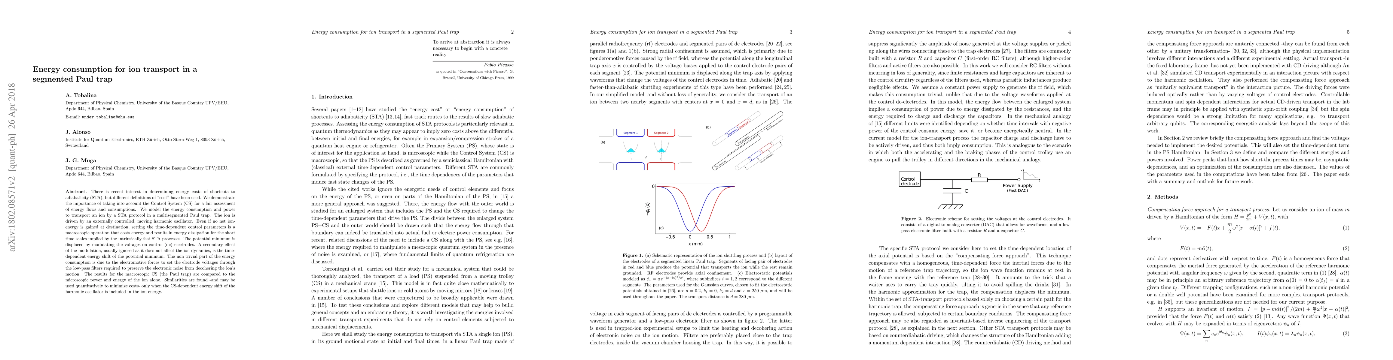 There is recent interest in determining energy costs of shortcuts to adiabaticity (STA), but different definitions of "cost" have been used. We demonstrate the importance of taking into account the Control System (CS) for a fair assessment of energy flows and consumptions. We model the energy consumption and power to transport an ion by a STA protocol in a multisegmented Paul trap. The ion is driven by an externally controlled, moving harmonic oscillator. Even if no net ion- energy is gained at destination, setting the time-dependent control parameters is a macroscopic operation that costs energy and results in energy dissipation for the short time scales implied by the intrinsically fast STA processes. The potential minimum is displaced by modulating the voltages on control (dc) electrodes. A secondary effect of the modulation, usually ignored as it does not affect the ion dynamics, is the time- dependent energy shift of the potential minimum. The non trivial part of the energy consumption is due to the electromotive forces to set the electrode voltages through the low-pass filters required to preserve the electronic noise from decohering the ion's motion. The results for the macroscopic CS (the Paul trap) are compared to the microscopic power and energy of the ion alone. Similarities are found -and may be used quantitatively to minimize costs- only when the CS-dependent energy shift of the harmonic oscillator is included in the ion energy.