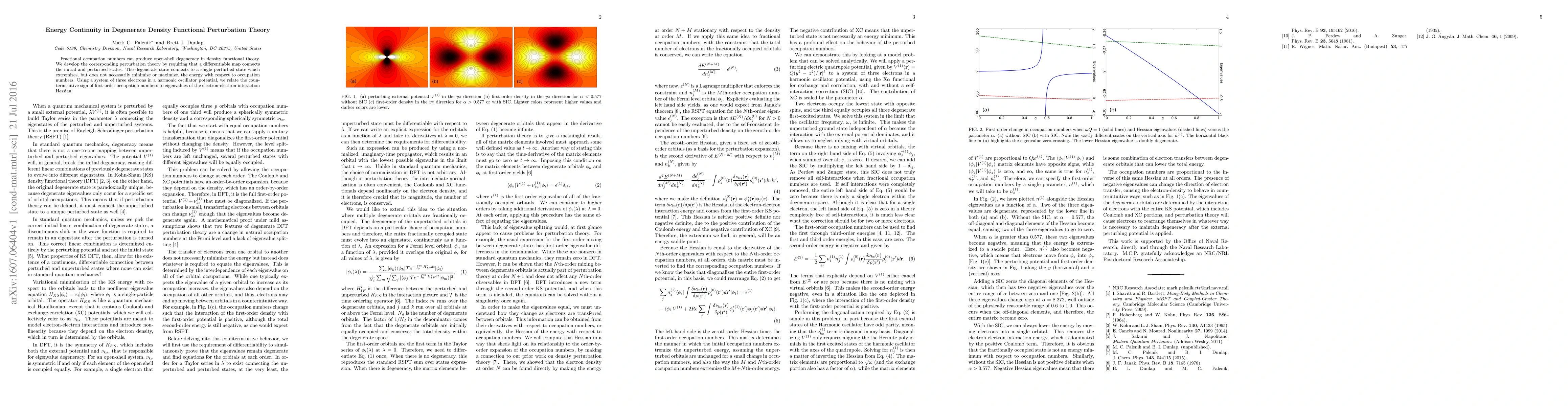 This paper develops a perturbation theory for degenerate density functional theory, ensuring a differentiable transition between initial and perturbed states. It explores how fractional occupation numbers lead to open-shell degeneracy and relates the sign of first-order occupation numbers to the electron-electron interaction Hessian eigenvalues in a three-electron system.