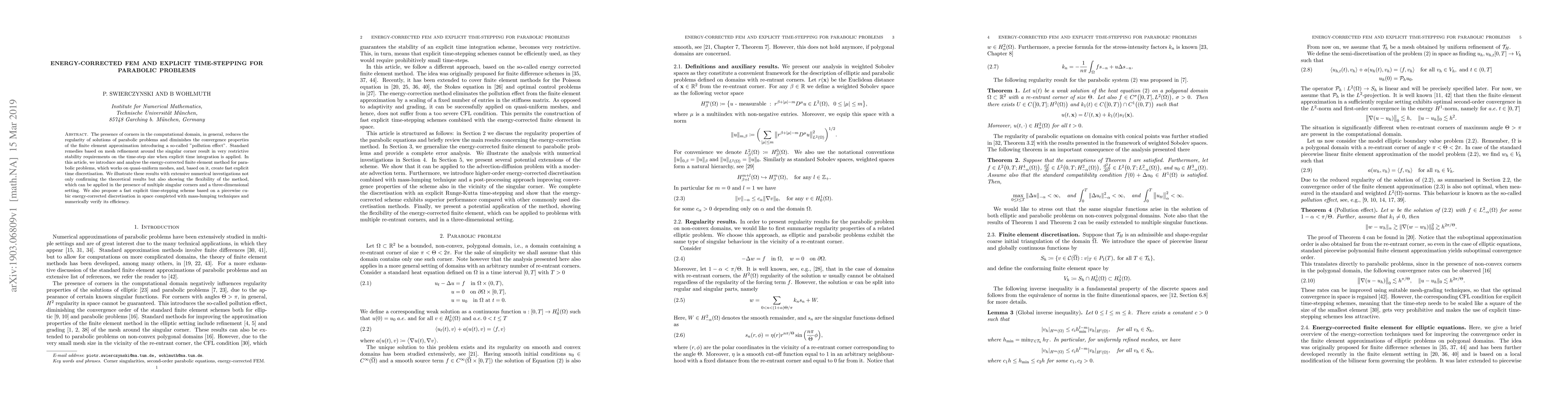 Researchers develop an energy-corrected FEM method for parabolic problems, which enables fast explicit time-stepping on quasi-uniform meshes, overcoming stability issues with singular corners.