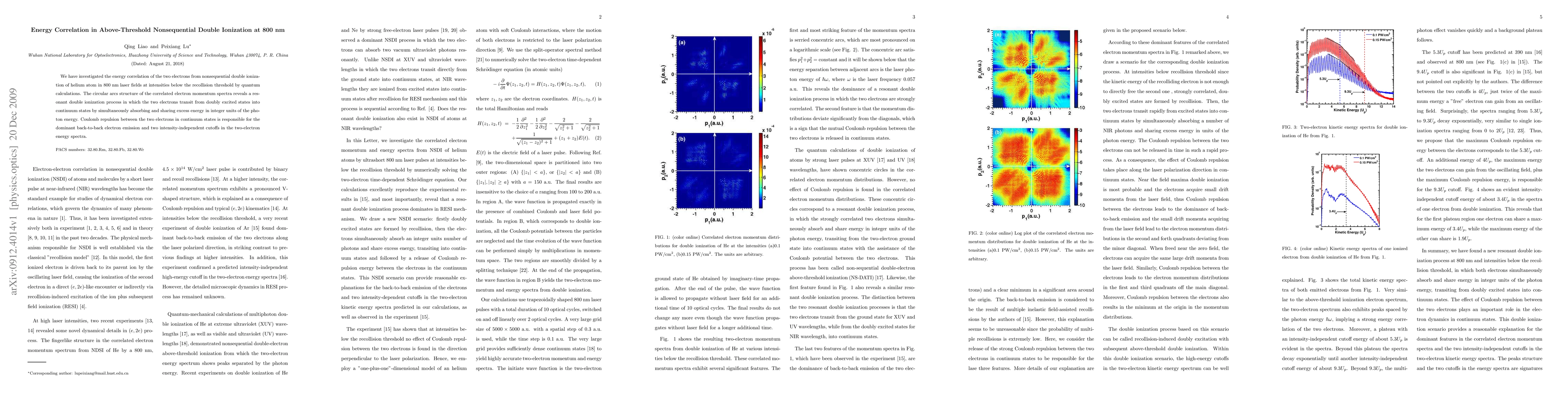 This study explores the energy correlation of two electrons from nonsequential double ionization of helium in 800 nm laser fields, revealing a resonant double ionization process where electrons transition from doubly excited states to continuum states, sharing photon energy in integer units. Coulomb repulsion in continuum states causes dominant back-to-back electron emission and consistent energy cutoffs.