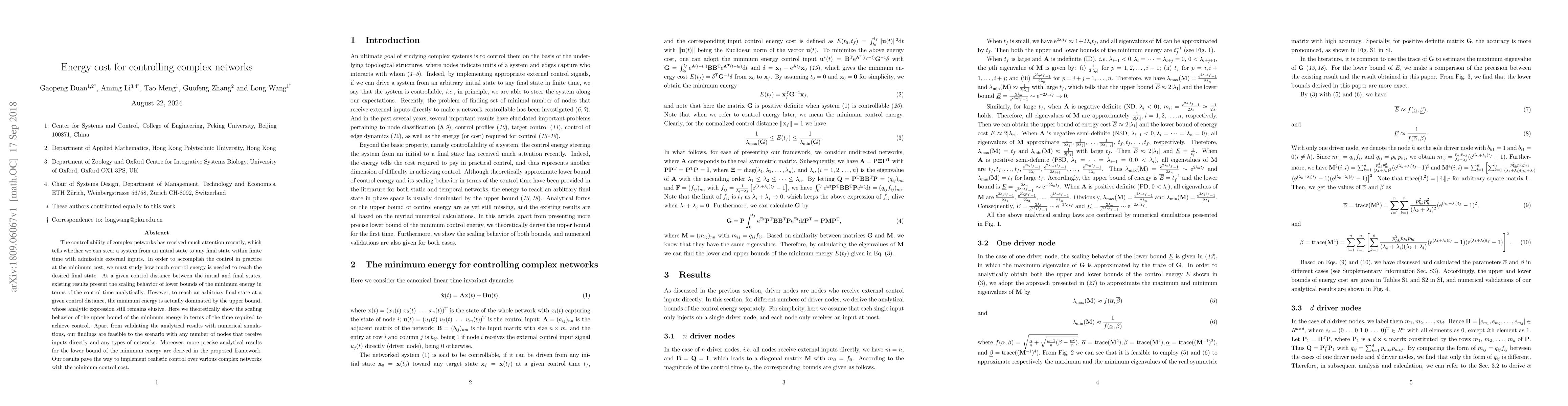 The paper studies the minimum energy needed to control complex networks, revealing a scaling behavior of upper bounds that helps pave the way for realistic control with minimal cost.