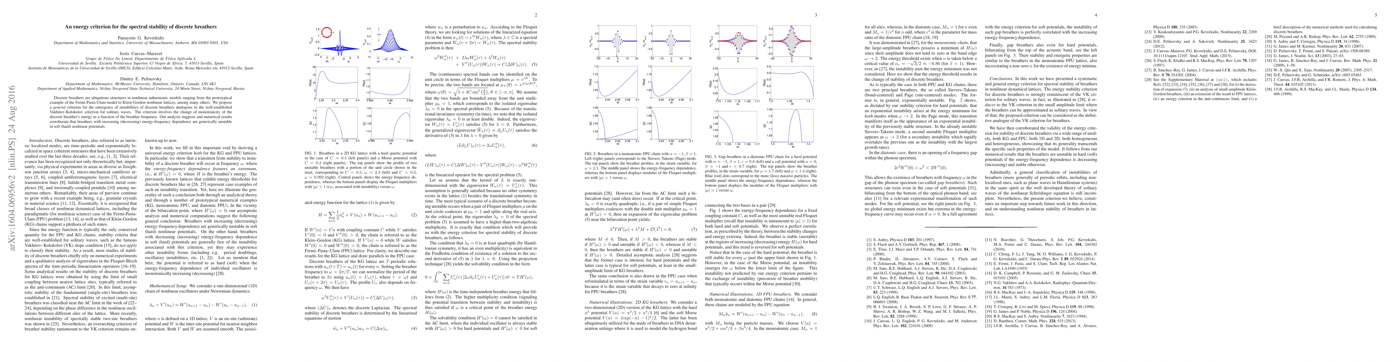 This paper proposes a new criterion for the spectral stability of discrete breathers based on the change in monotonicity of their energy-frequency relationship, analogous to the Vakhitov-Kolokolov criterion for solitary waves. Numerical results support the theory that breathers with increasing energy at higher frequencies are unstable in soft nonlinear potentials.
