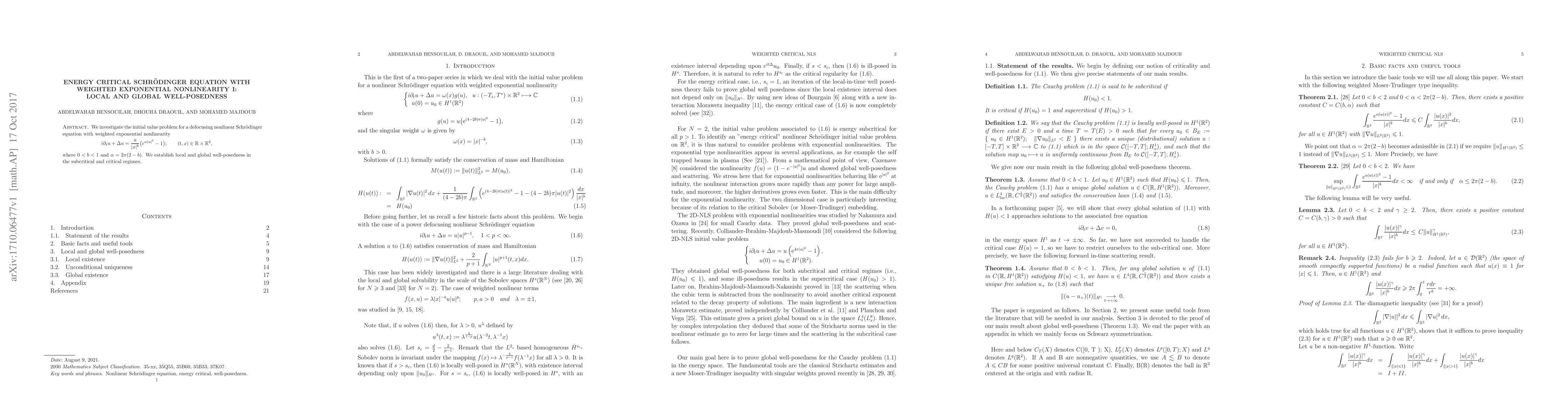 This paper studies the local and global well-posedness of a defocusing nonlinear Schrödinger equation with weighted exponential nonlinearity, establishing results in both subcritical and critical regimes. The equation features a term involving the spatial variable and an exponential nonlinearity dependent on the solution's magnitude.