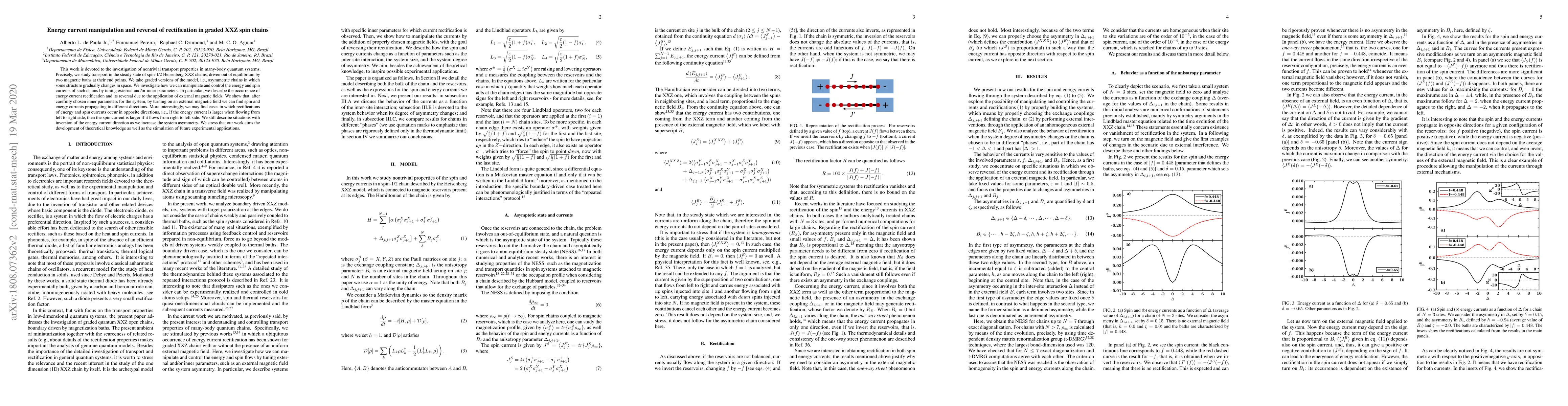 This paper investigates the manipulation and reversal of energy current rectification in graded XXZ spin chains, demonstrating how external and internal parameters can control energy and spin currents, including opposite rectification directions and current direction inversion with increased asymmetry. The study aims to advance theoretical understanding and inspire future experimental applications.