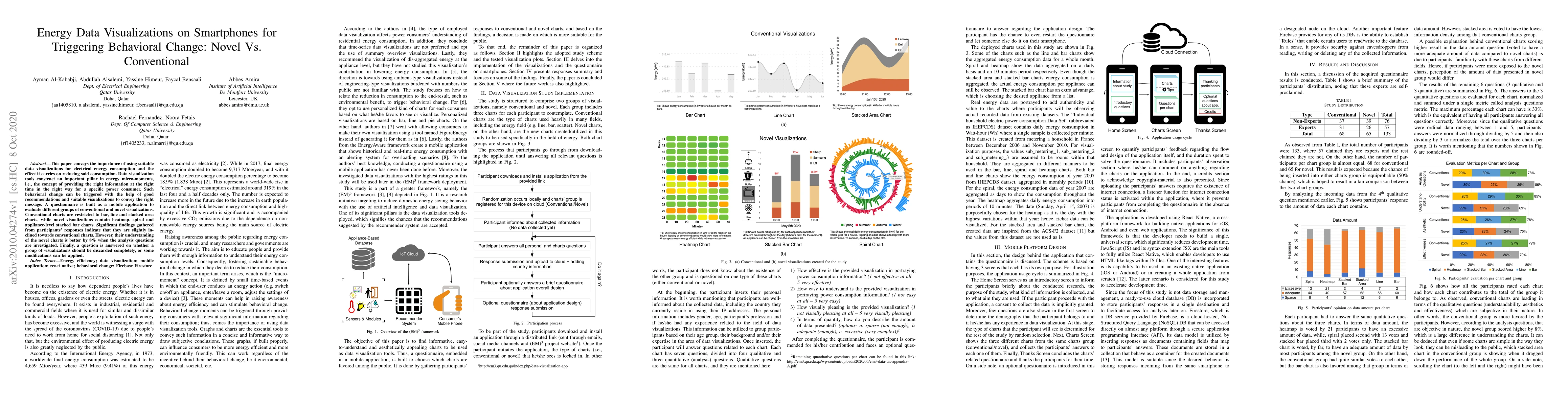This paper conveys the importance of using suitable data visualizations for electrical energy consumption and the effect it carries on reducing said consumption. Data visualization tools construct an important pillar in energy micro-moments, i.e., the concept of providing the right information at the right time in the right way for a specific power consumer. Such behavioral change can be triggered with the help of good recommendations and suitable visualizations to convey the right message. A questionnaire is built as a mobile application to evaluate different groups of conventional and novel visualizations. Conventional charts are restricted to bar, line and stacked area charts, while novel visualizations contain heatmap, spiral and appliance-level stacked bar charts. Significant findings gathered from participants' responses indicate that they are slightly inclined towards conventional charts. However, their understanding of the novel charts is better by 8% when the analysis questions are investigated. Finally, a question is answered on whether a group of visualizations should be discarded completely, or some modifications can be applied.