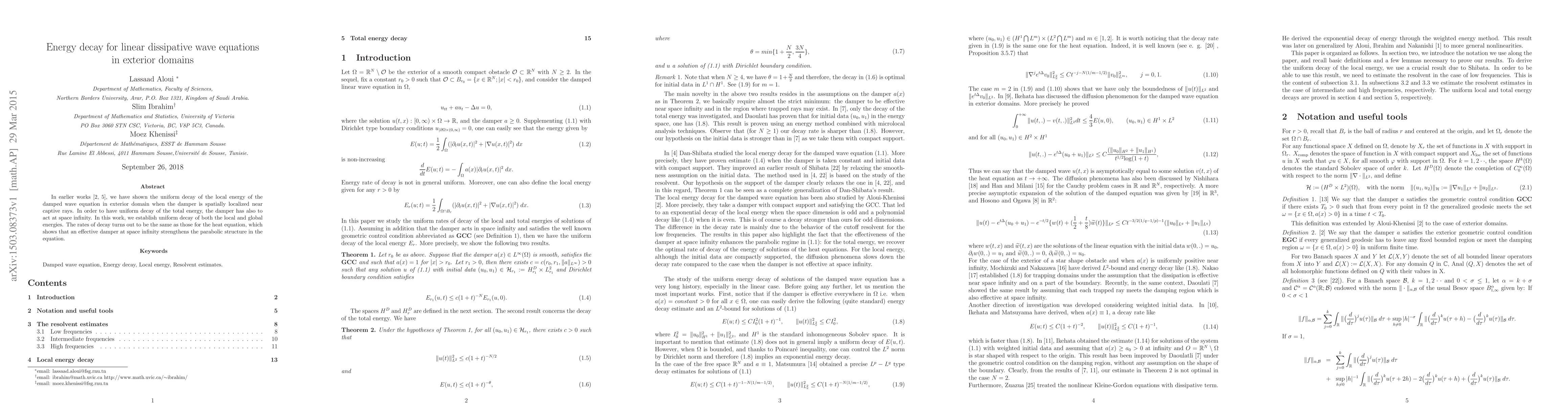 In earlier works, we have shown the uniform decay of the local energy of the damped wave equation in exterior domain when the damper is spatially localized near captive rays. In order to have uniform decay of the total energy, the damper has also to act at space infinity. In this work, we establish uniform decay of both the local and global energies. The rates of decay turns out to be the same as those for the heat equation, which shows that an effective damper at space infinity strengthens the parabolic structure in the equation.