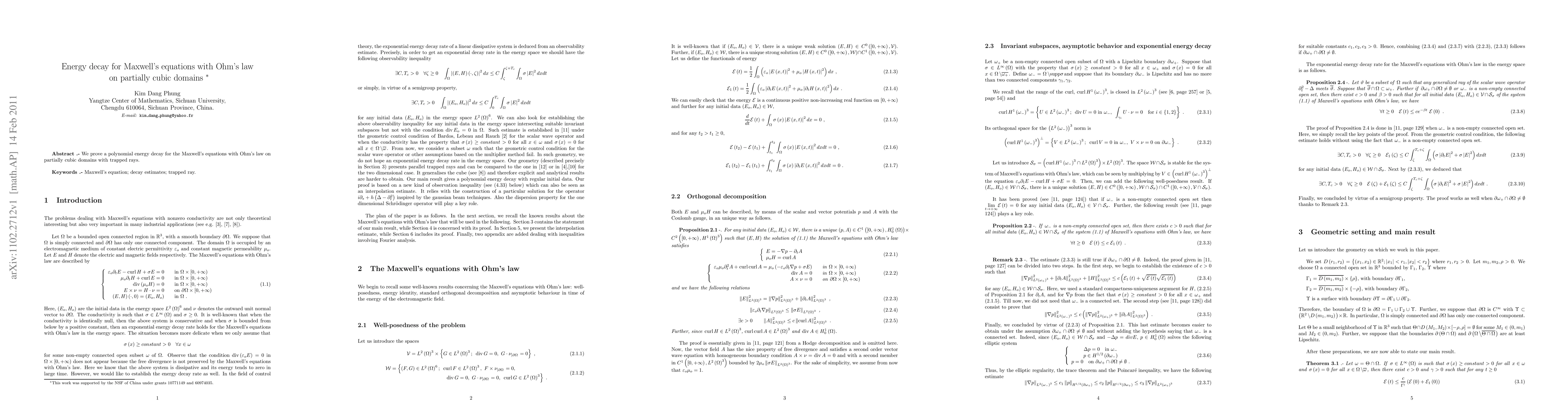 Summary: This paper establishes a polynomial energy decay for Maxwell's equations incorporating Ohm's law within partially cubic domains characterized by trapped rays. The study provides a rigorous mathematical proof of the decay behavior.