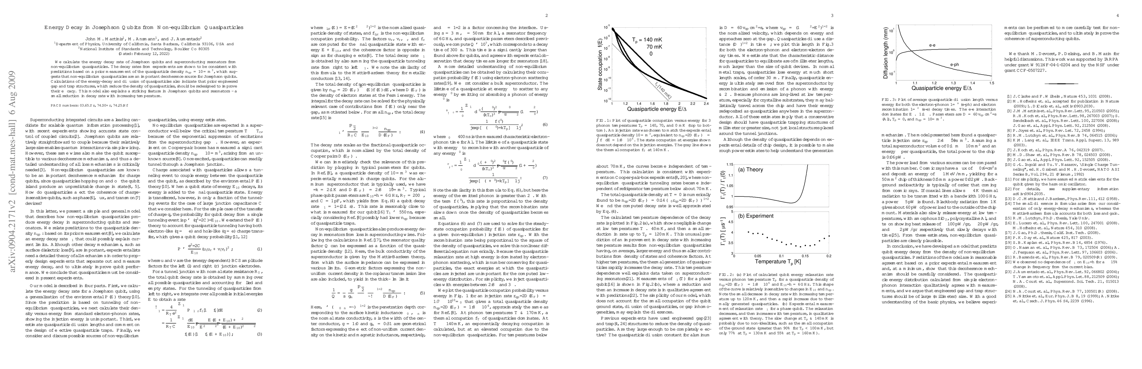 This paper investigates the energy decay in Josephson qubits due to non-equilibrium quasiparticles, finding that the decay rate aligns with predictions based on a quasiparticle density of n_qp = 10/um^3, highlighting the role of quasiparticles in qubit decoherence. It also suggests redesigning engineered gap and trap structures to better mitigate quasiparticle density and explains a temperature-dependent reduction in decay rates.