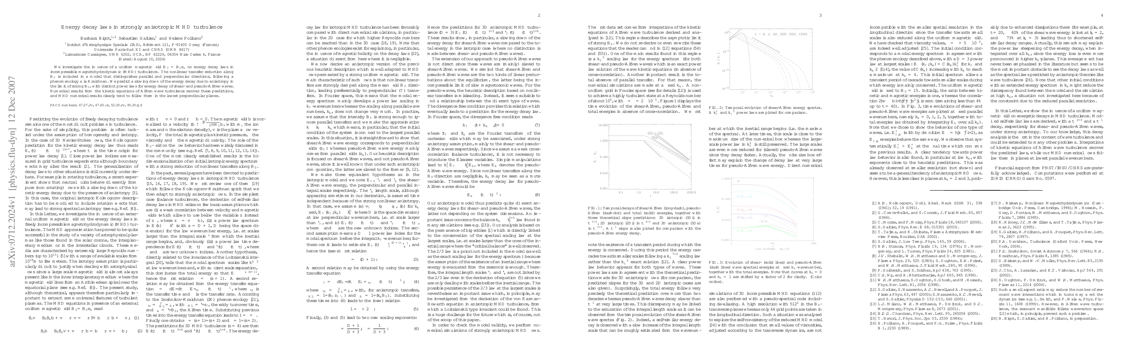 This paper examines how a strong uniform magnetic field influences energy decay in anisotropic magnetohydrodynamic (MHD) turbulence, predicting slower decay and distinct power laws for shear- and pseudo-Alfv\'en waves. Numerical simulations support these predictions, showing alignment with the theoretical model in low perpendicular planes.