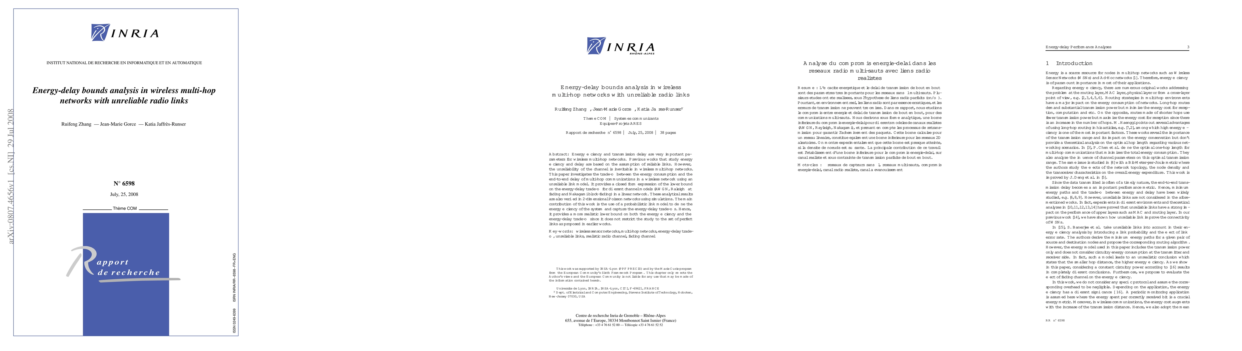 This paper analyzes the energy-delay trade-off in wireless multi-hop networks under unreliable radio links, providing a closed-form expression for the lower bound on this trade-off for various channel models. It introduces a probabilistic link model to offer a more realistic assessment compared to previous works that assumed reliable links.