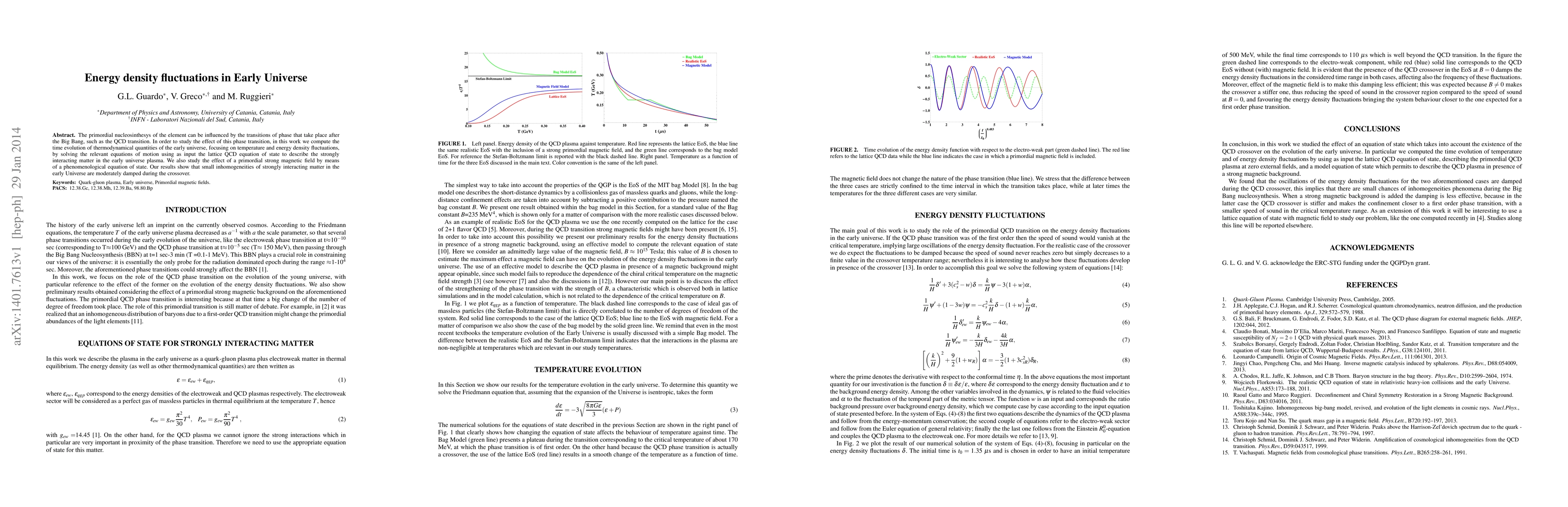 The primordial nucleosinthesys of the element can be influenced by the transitions of phase that take place after the Big Bang, such as the QCD transition. In order to study the effect of this phase transition, in this work we compute the time evolution of thermodynamical quantities of the early universe, focusing on temperature and energy density fluctuations, by solving the relevant equations of motion using as input the lattice QCD equation of state to describe the strongly interacting matter in the early universe plasma. We also study the effect of a primordial strong magnetic field by means of a phenomenological equation of state. Our results show that small inhomogeneities of strongly interacting matter in the early Universe are moderately damped during the crossover.