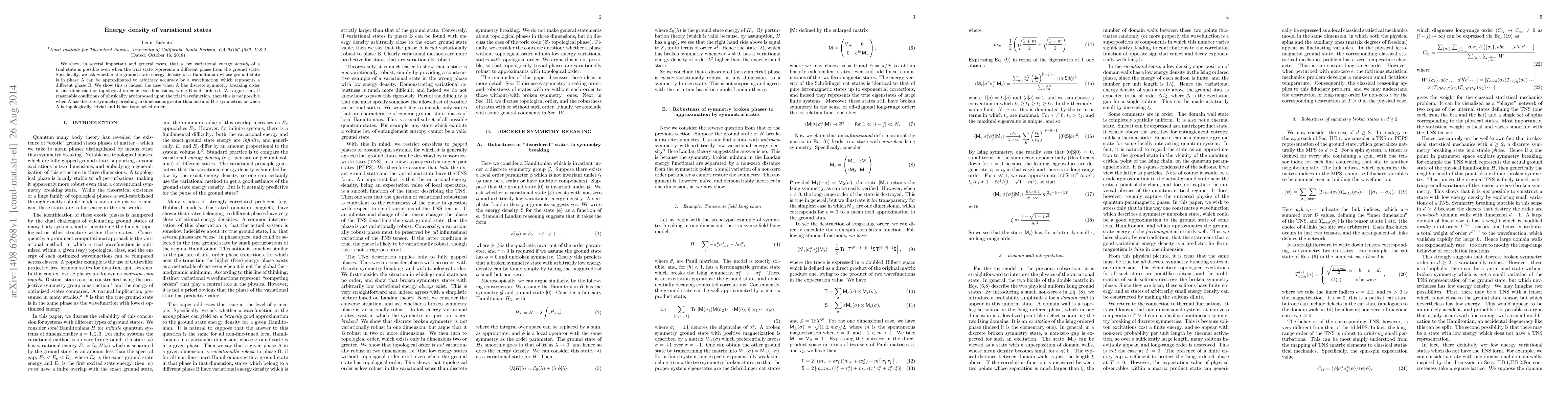 We show, in several important and general cases, that a low variational energy density of a trial state is possible even when the trial state represents a different phase from the ground state. Specifically, we ask whether the ground state energy density of a Hamiltonian whose ground state is in phase A can be approximated to arbitrary accuracy by a wavefunction which represents a different phase B. We show this is indeed the case when A has discrete symmetry breaking order in one dimension or topological order in two dimensions, while B is disordered. We argue that, if reasonable conditions of physicality are imposed upon the trial wavefunction, then this is not possible when A has discrete symmetry breaking in dimensions greater than one and B is symmetric, or when A is topologically trivial and B has topological order.