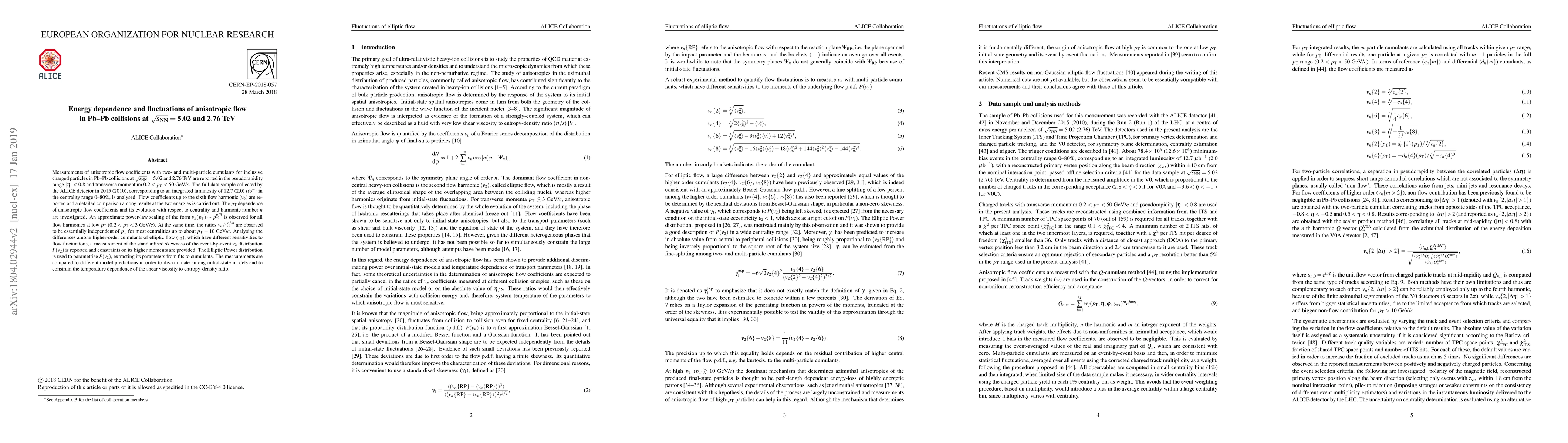 Researchers measured anisotropic flow coefficients in Pb-Pb collisions at two energies, finding a power-law scaling of flow with transverse momentum and constraints on the temperature dependence of viscosity.