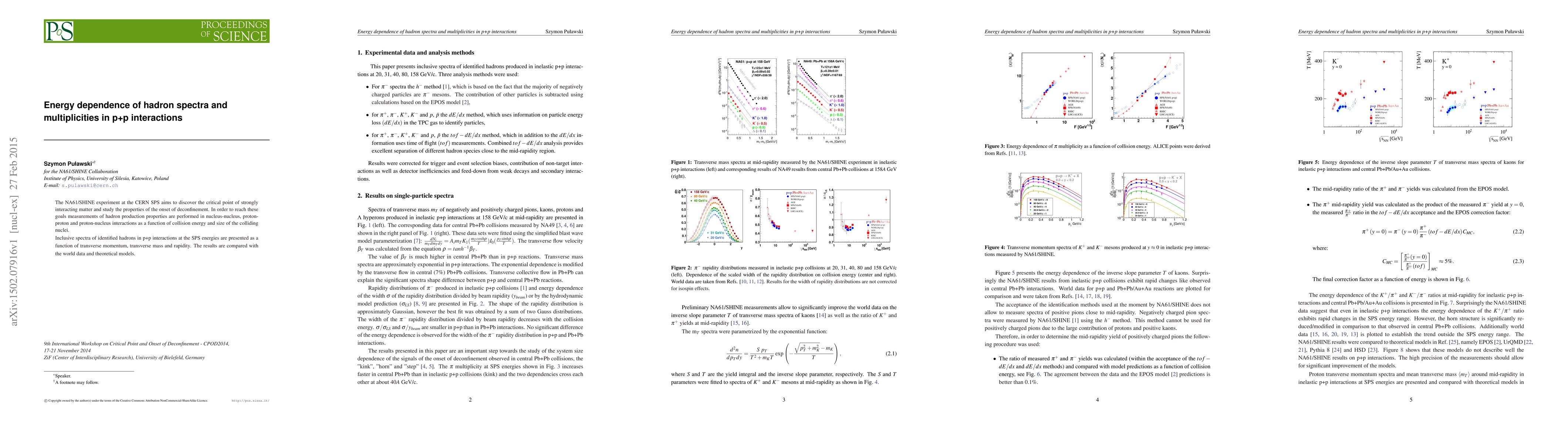 The NA61/SHINE experiment investigates hadron spectra and multiplicities in proton-proton interactions at various SPS energies to locate the critical point of strongly interacting matter. The study presents inclusive spectra of identified hadrons and compares them with global data and theoretical models.