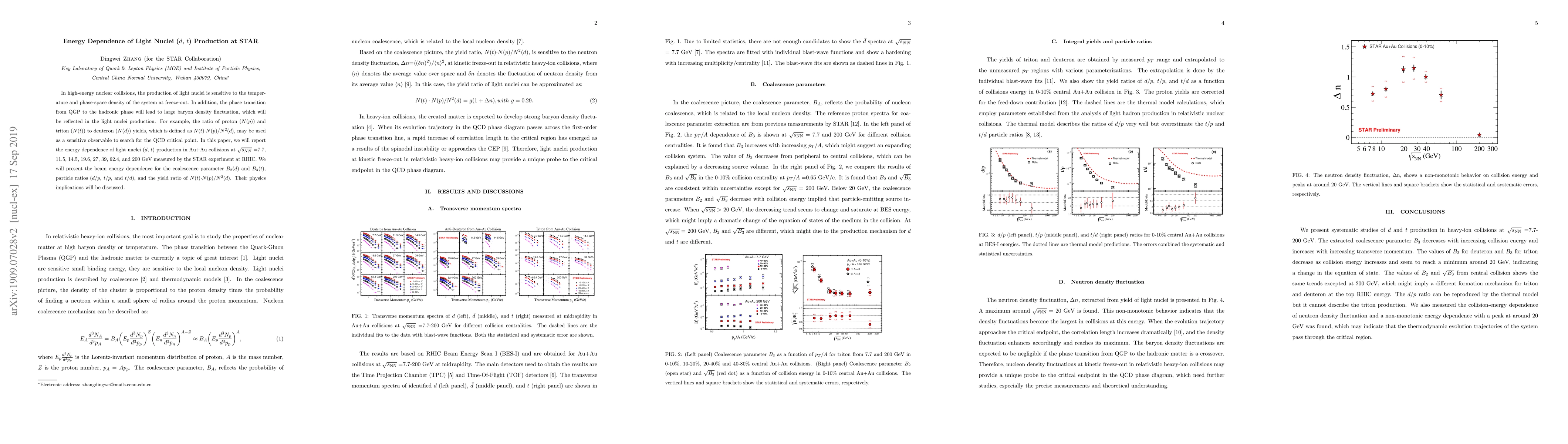 In high-energy nuclear collisions, the production of light nuclei is sensitive to the temperature and phase-space density of the system at freeze-out. In addition, the phase transition from QGP to the hadronic phase will lead to large baryon density fluctuation, which will be reflected in the light nuclei production. For example, the ratio of proton ($N(p)$) and triton ($N(t)$) to deuteron ($N(d)$) yields, which is defined as $N(t)$$\cdot$$N(p)$/$N^2(d)$, may be used as a sensitive observable to search for the QCD critical point. In this paper, we will report the energy dependence of light nuclei ($d$, $t$) production in Au+Au collisions at $\sqrt{s_{NN}}$ =7.7, 11.5, 14.5, 19.6, 27, 39, 62.4, and 200 GeV measured by the STAR experiment at RHIC. We will present the beam energy dependence for the coalescence parameter $B_2(d)$ and $B_3(t)$, particle ratios ($d/p$, $t/p$, and $t/d$), and the yield ratio of $N(t)$$\cdot$$N(p)$/$N^2(d)$. Their physics implications will be discussed.