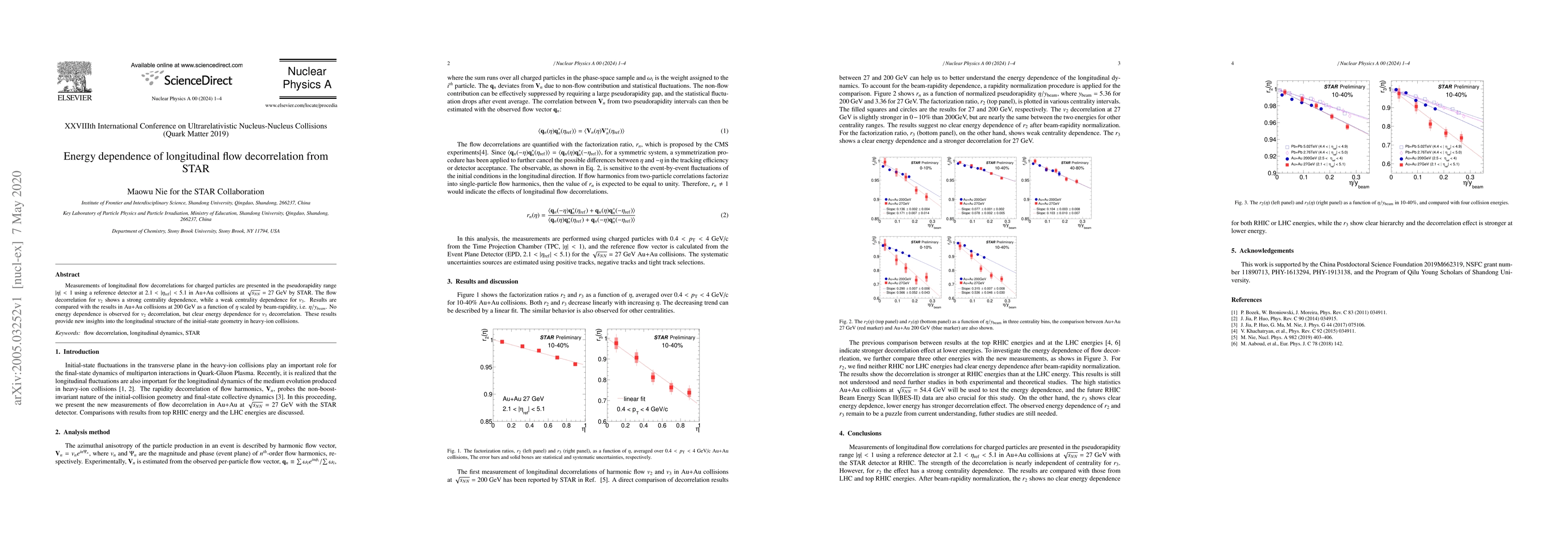 Researchers at STAR found that in heavy-ion collisions, the decorrelation of longitudinal flow for charged particles shows a strong centrality dependence for v2 but not for v3, with no energy dependence observed for v2 decorrelation.