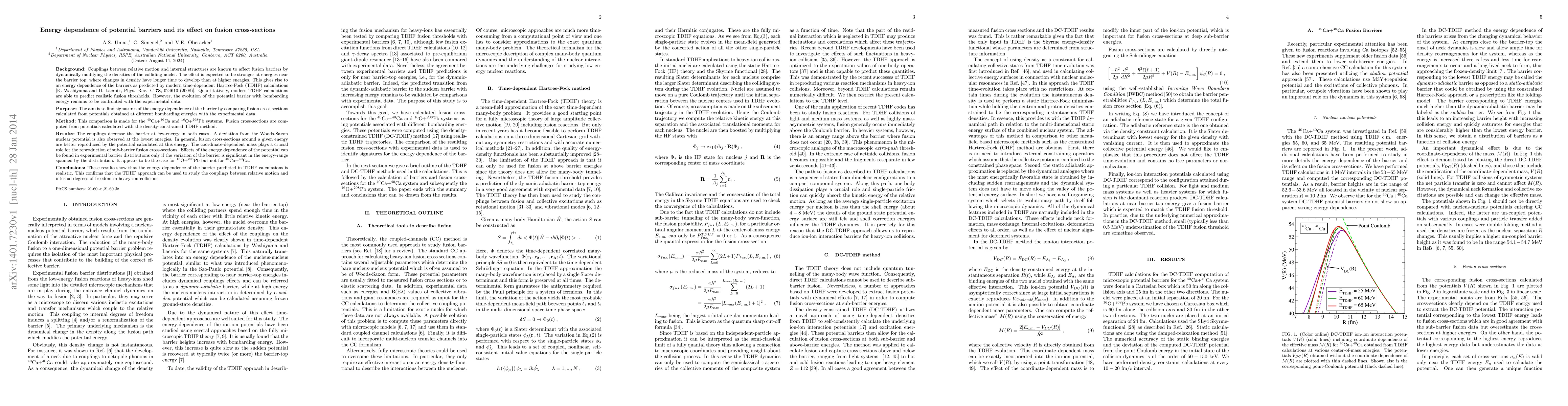 This paper investigates how energy dependence of potential barriers affects fusion cross-sections in nuclear collisions, using TDHF calculations to predict realistic fusion thresholds. The study finds that the energy dependence of the barrier is significant in the $^{16}$O+$^{208}$Pb system but not in $^{40}$Ca+$^{40}$Ca, confirming the TDHF approach's effectiveness in studying these couplings.