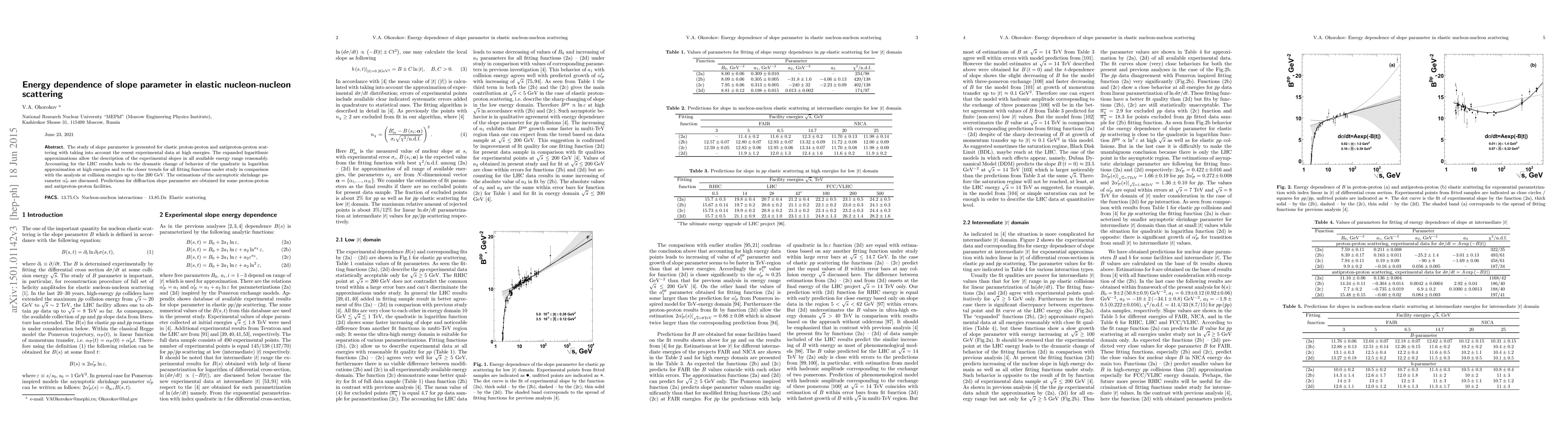 The study of slope parameter is presented for elastic proton-proton and antiproton-proton scattering with taking into account the resent experimental data at high energies. The expanded logarithmic approximations allow the description of the experimental slopes in all available energy range reasonably. Accounting for the LHC results leads to the dramatic change of behavior of the quadratic in logarithm approximation at high energies and to the closer trends for all fitting functions under study in comparison with the analysis at collision energies up to the 200 GeV. The estimations of the asymptotic shrinkage parameter $\alpha'_{\cal{P}}$ are discussed. Predictions for diffraction slope parameter are obtained for some proton-proton and antiproton-proton facilities.