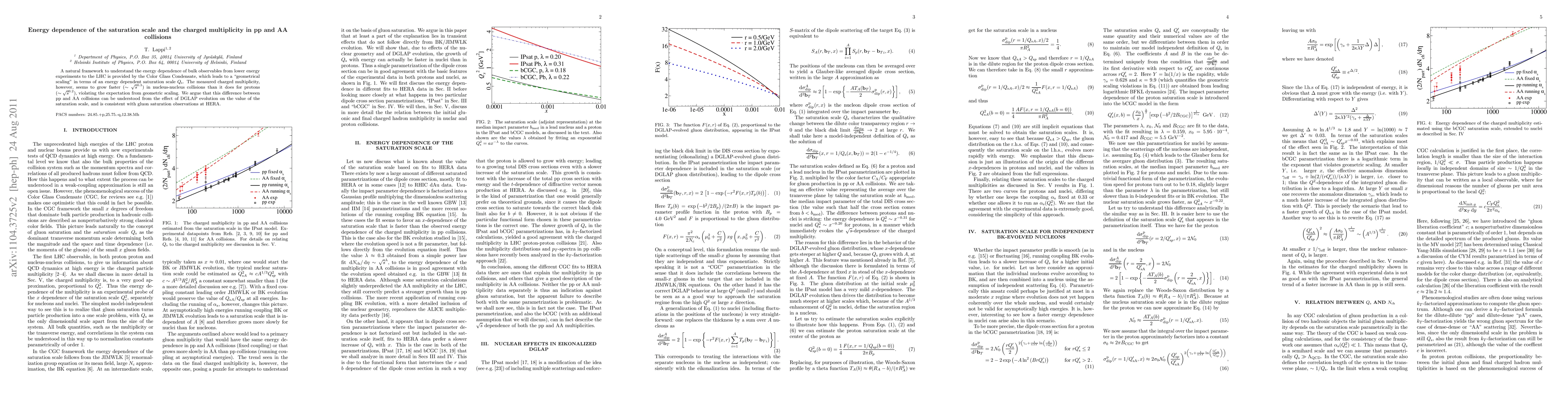 This paper explores the energy dependence of the saturation scale and charged multiplicity in proton-proton and nucleus-nucleus collisions, finding that charged multiplicity grows faster in AA collisions than in pp collisions, challenging geometric scaling expectations. The authors attribute this discrepancy to DGLAP evolution effects on the saturation scale, aligning with gluon saturation observations.