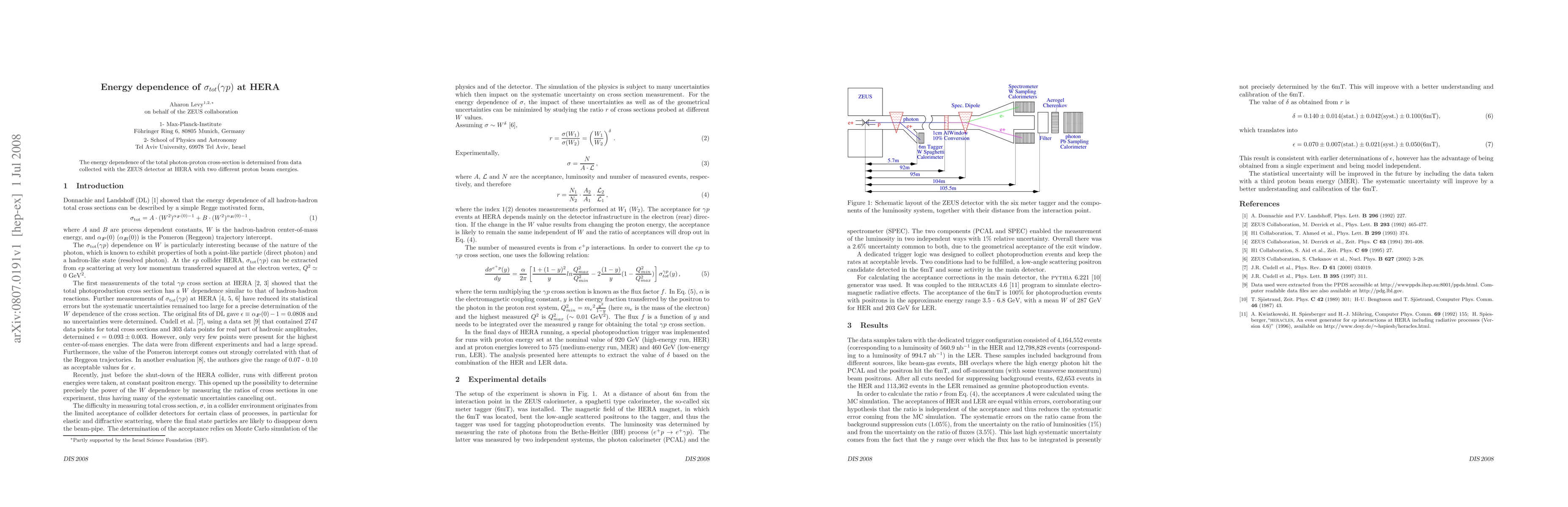 Summary: This study measures the energy dependence of the total photon-proton cross-section using data from the ZEUS detector at HERA, analyzing results from two distinct proton beam energies to understand the interaction dynamics.