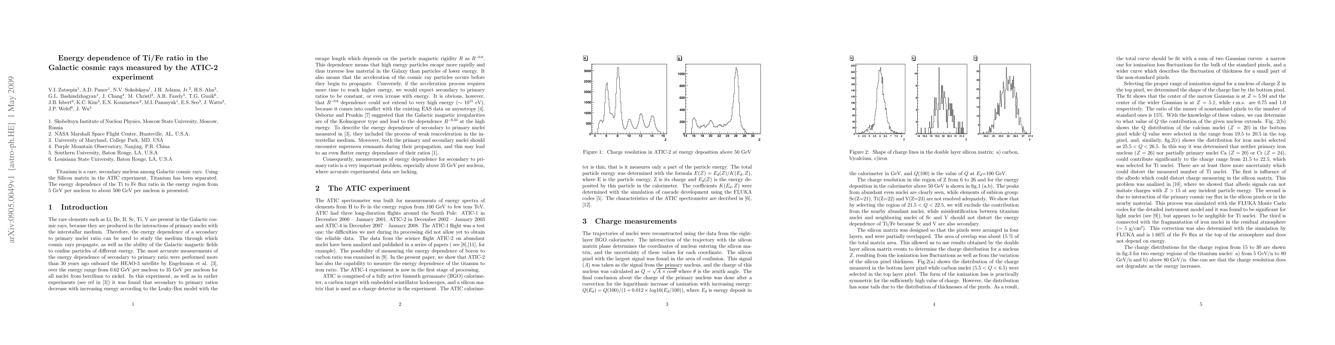 The ATIC-2 experiment measures the energy dependence of the Ti/Fe ratio in Galactic cosmic rays, revealing variations in the Ti to Fe flux from 5 GeV/nucleon to 500 GeV/nucleon, highlighting Titanium's role as a rare secondary nucleus. These findings provide insights into cosmic ray propagation and source characteristics.