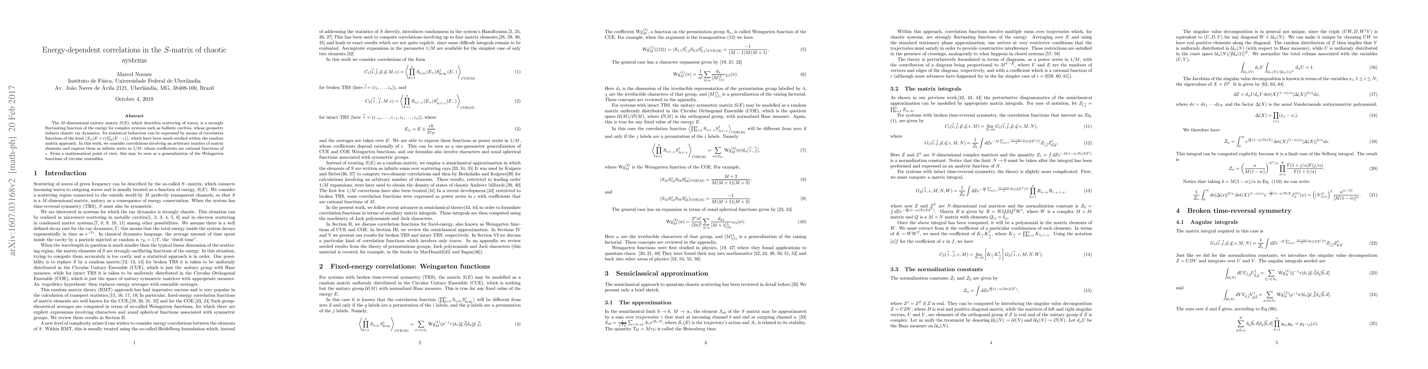 The $M$-dimensional unitary matrix $S(E)$, which describes scattering of waves, is a strongly fluctuating function of the energy for complex systems such as ballistic cavities, whose geometry induces chaotic ray dynamics. Its statistical behaviour can be expressed by means of correlation functions of the kind $\left \langle S_{ij}(E+\epsilon)S^\dag_{pq}(E-\epsilon)\right\rangle$, which have been much studied within the random matrix approach. In this work, we consider correlations involving an arbitrary number of matrix elements and express them as infinite series in $1/M$, whose coefficients are rational functions of $\epsilon$. From a mathematical point of view, this may be seen as a generalization of the Weingarten functions of circular ensembles.