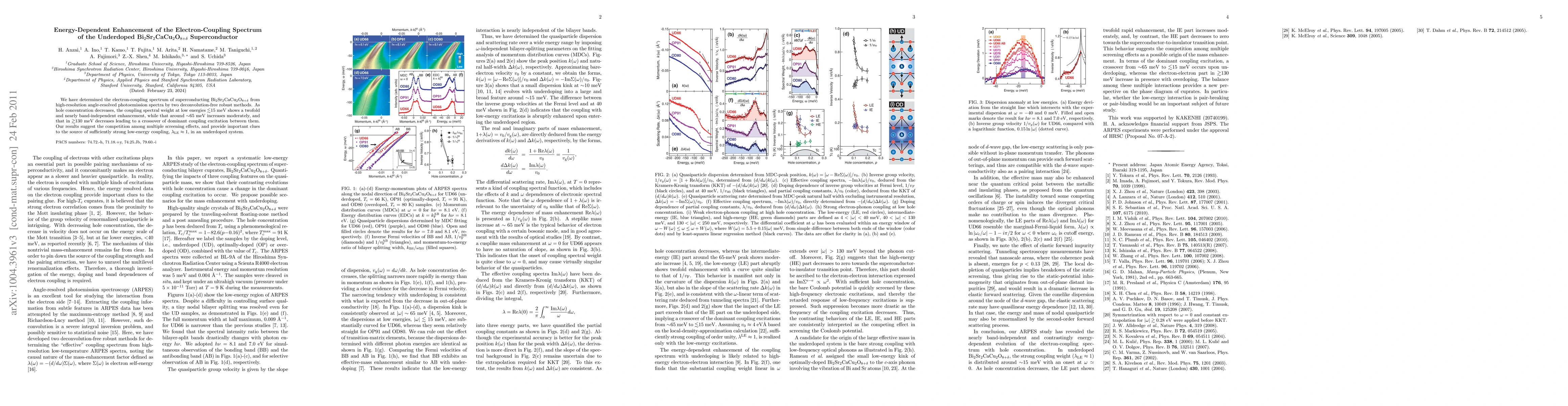 We have determined the electron-coupling spectrum of superconducting Bi2Sr2CaCu2O8+d from high-resolution angle-resolved photoemission spectra by two deconvolution-free robust methods. As hole concentration decreases, the coupling spectral weight at low energies ~<15 meV shows a twofold and nearly band-independent enhancement, while that around ~65 meV increases moderately, and that in ~>130 meV decreases leading to a crossover of dominant coupling excitation between them. Our results suggest the competition among multiple screening effects, and provide important clues to the source of sufficiently strong low-energy coupling, {\lambda}LE ~ 1, in underdoped system.