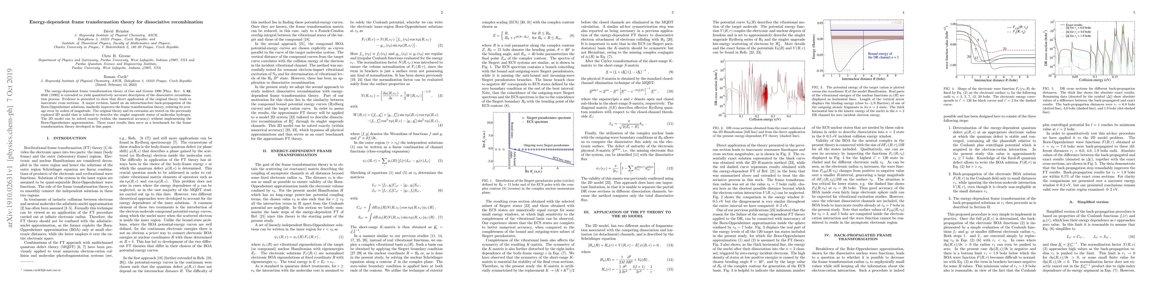 This paper extends the energy-dependent frame transformation theory to accurately describe dissociative recombination, showing that the original theory yields inaccurate cross sections. A revised approach based on back-propagation of Born-Oppenheimer solutions significantly reduces errors, and the results are benchmarked against an exact 2D model for singlet ungerade states of molecular hydrogen.