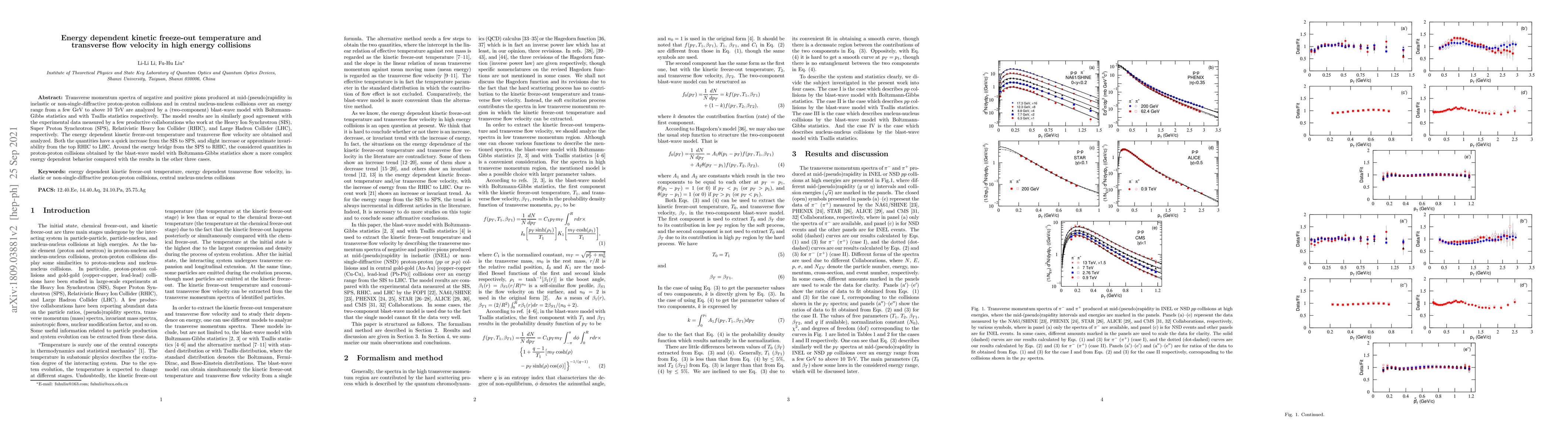 This paper analyzes transverse momentum spectra of pions in high-energy collisions using a blast-wave model, finding good agreement with experimental data from various colliders. It reveals an energy-dependent kinetic freeze-out temperature and transverse flow velocity, with significant changes from lower to higher energies and more complex behavior in proton-proton collisions.