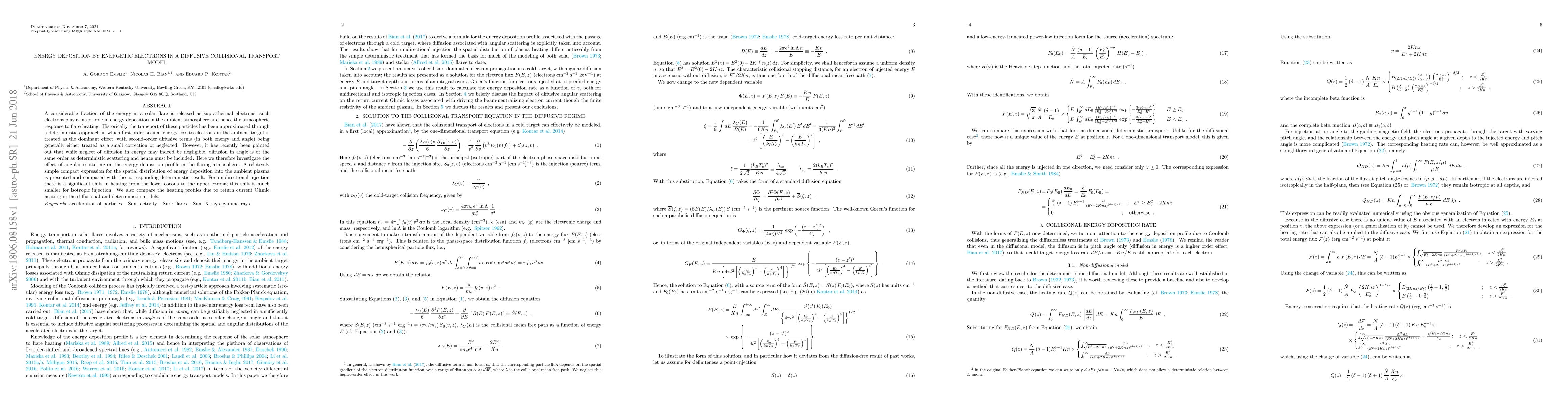 A considerable fraction of the energy in a solar flare is released as suprathermal electrons; such electrons play a major role in energy deposition in the ambient atmosphere and hence the atmospheric response to flare heating. Historically the transport of these particles has been approximated through a deterministic approach in which first-order secular energy loss to electrons in the ambient target is treated as the dominant effect, with second-order diffusive terms (in both energy and angle) being generally either treated as a small correction or neglected. However, it has recently been pointed out that while neglect of diffusion in energy may indeed be negligible, diffusion in angle is of the same order as deterministic scattering and hence must be included. Here we therefore investigate the effect of angular scattering on the energy deposition profile in the flaring atmosphere. A relatively simple compact expression for the spatial distribution of energy deposition into the ambient plasma is presented and compared with the corresponding deterministic result. For unidirectional injection there is a significant shift in heating from the lower corona to the upper corona; this shift is much smaller for isotropic injection. We also compare the heating profiles due to return current Ohmic heating in the diffusional and deterministic models.