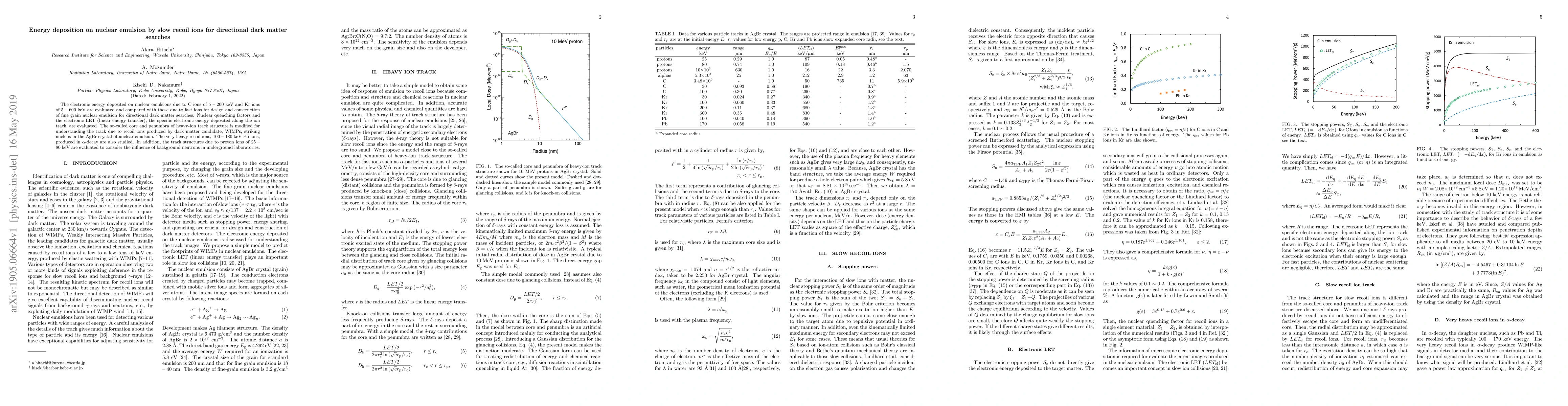 The electronic energy deposited on nuclear emulsions due to C ions of 5 -- 200~keV and Kr ions of 5 -- 600~keV are evaluated and compared with those due to fast ions for design and construction of fine grain nuclear emulsion for directional dark matter searches. Nuclear quenching factors and the electronic LET (linear energy transfer), the specific electronic energy deposited along the ion track, are evaluated. The so-called core and penumbra of heavy-ion track structure is modified for understanding the track due to recoil ions produced by dark matter candidate, WIMPs, striking nucleus in the AgBr crystal of nuclear emulsion. The very heavy recoil ions, 100 -- 180~keV Pb ions, produced in $\alpha$-decay are also studied. In addition, the track structures due to proton ions of 25 -- 80~keV are evaluated to consider the influence of background neutrons in underground laboratories.