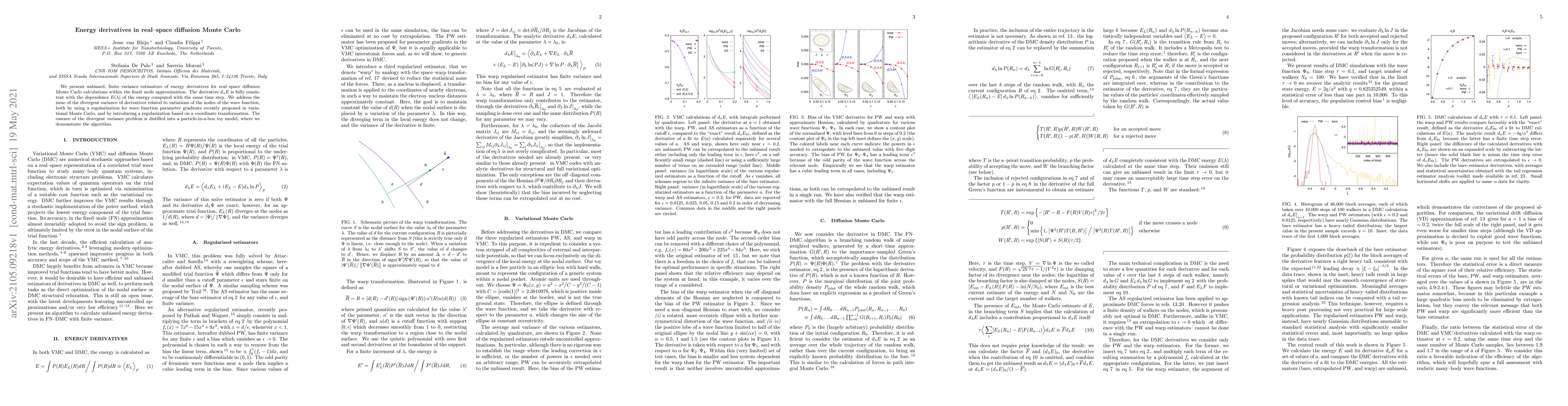 This paper introduces unbiased estimators for energy derivatives in real-space diffusion Monte Carlo, addressing the issue of divergent variance through regularization techniques. It demonstrates the method using a particle-in-a-box model to illustrate the effectiveness of the proposed approach.
