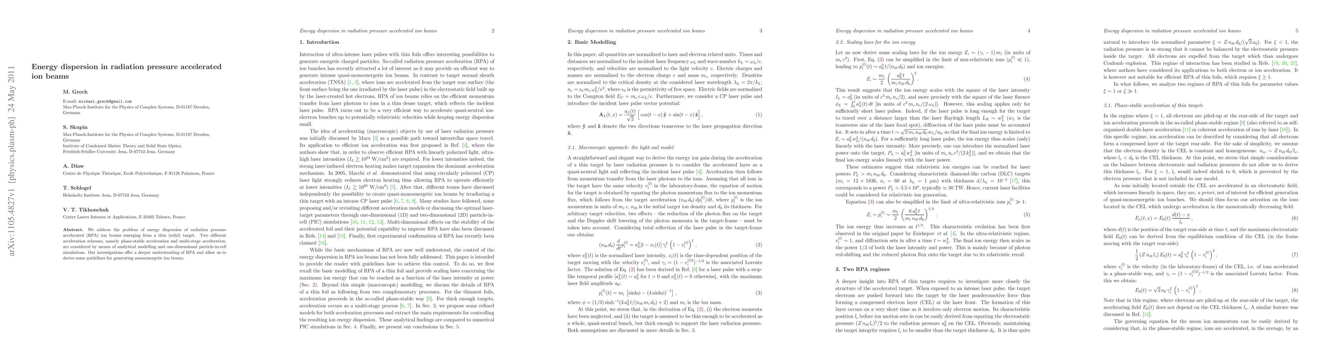 This paper investigates energy dispersion in radiation pressure accelerated (RPA) ion beams using analytical modeling and simulations. It compares phase-stable and multi-stage acceleration schemes to derive guidelines for producing monoenergetic ion beams.