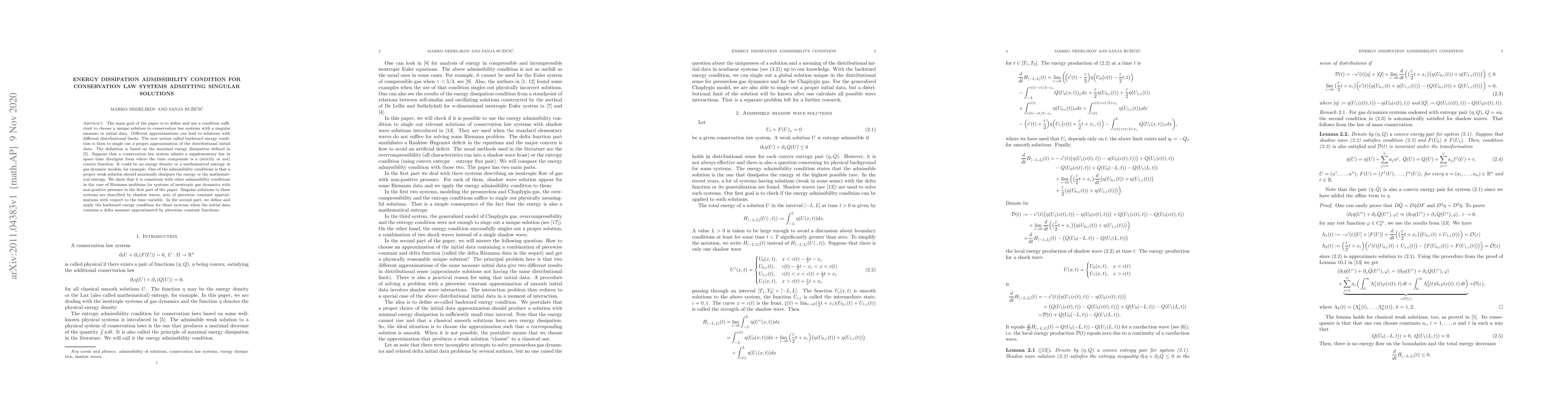 This paper introduces a backward energy condition to uniquely select solutions for conservation law systems with singular initial data, ensuring maximal energy dissipation. It applies this condition to Riemann problems in isentropic gas dynamics, demonstrating consistency with other admissibility conditions and describing singular solutions via shadow waves.