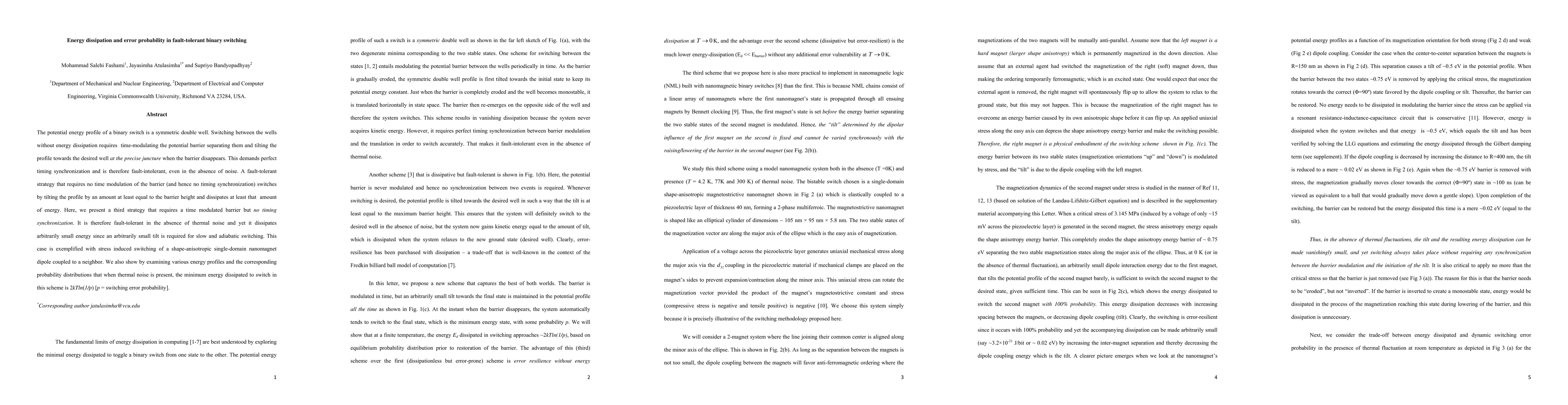Researchers developed a fault-tolerant binary switching strategy that dissipates arbitrarily small energy without timing synchronization, making it reliable in the absence of thermal noise.