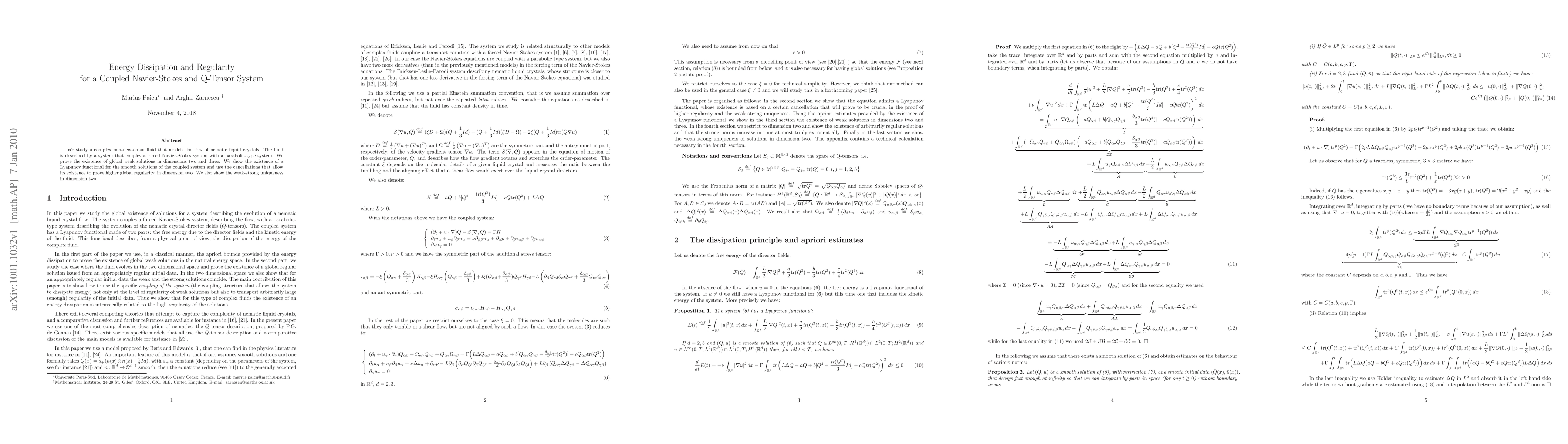 This paper investigates a coupled system of Navier-Stokes and Q-tensor equations modeling non-Newtonian fluid flow of nematic liquid crystals. The authors prove the existence of global weak solutions and establish higher regularity and weak-strong uniqueness in two dimensions.