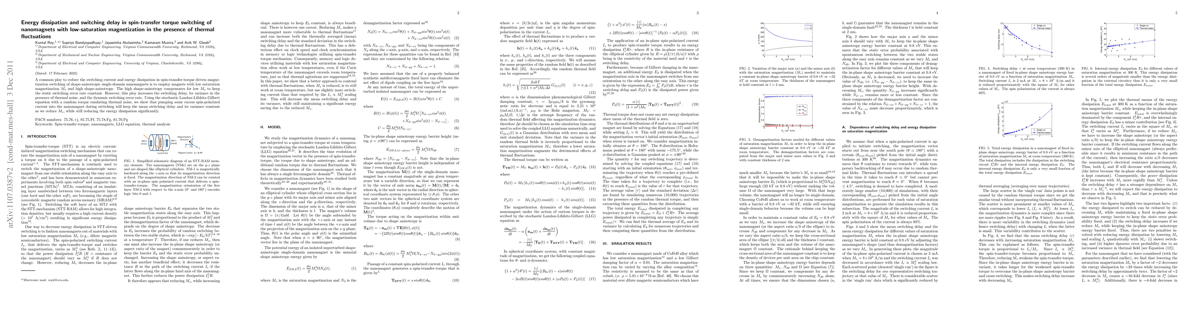 A common ploy to reduce the switching current and energy dissipation in spin-transfer-torque driven magnetization switching of shape-anisotropic single-domain nanomagnets is to employ magnets with low saturation magnetization $M_s$ and high shape-anisotropy. The high shape-anisotropy compensates for low $M_s$ to keep the static switching error rate constant. However, this ploy increases the switching delay, its variance in the presence of thermal noise, and the dynamic switching error rate. Using the stochastic Landau-Lifshitz-Gilbert equation with a random torque emulating thermal noise, we show that pumping some excess spin-polarized current into the nanomagnet during switching will keep the mean switching delay and its variance constant as we reduce $M_s$, while still reducing the energy dissipation significantly.