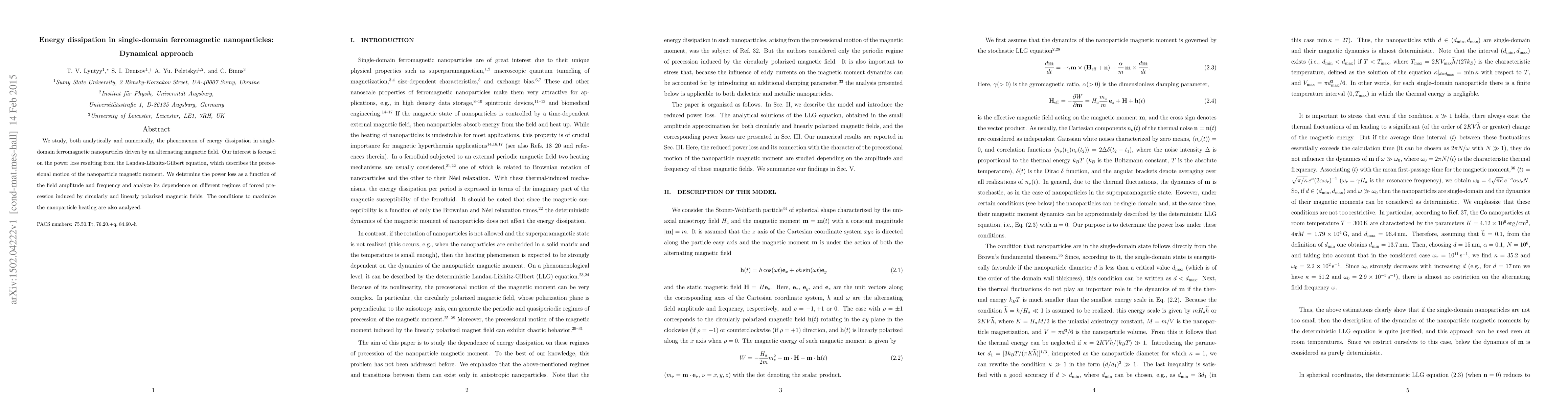We study, both analytically and numerically, the phenomenon of energy dissipation in single-domain ferromagnetic nanoparticles driven by an alternating magnetic field. Our interest is focused on the power loss resulting from the Landau-Lifshitz-Gilbert equation, which describes the precessional motion of the nanoparticle magnetic moment. We determine the power loss as a function of the field amplitude and frequency and analyze its dependence on different regimes of forced precession induced by circularly and linearly polarized magnetic fields. The conditions to maximize the nanoparticle heating are also analyzed.