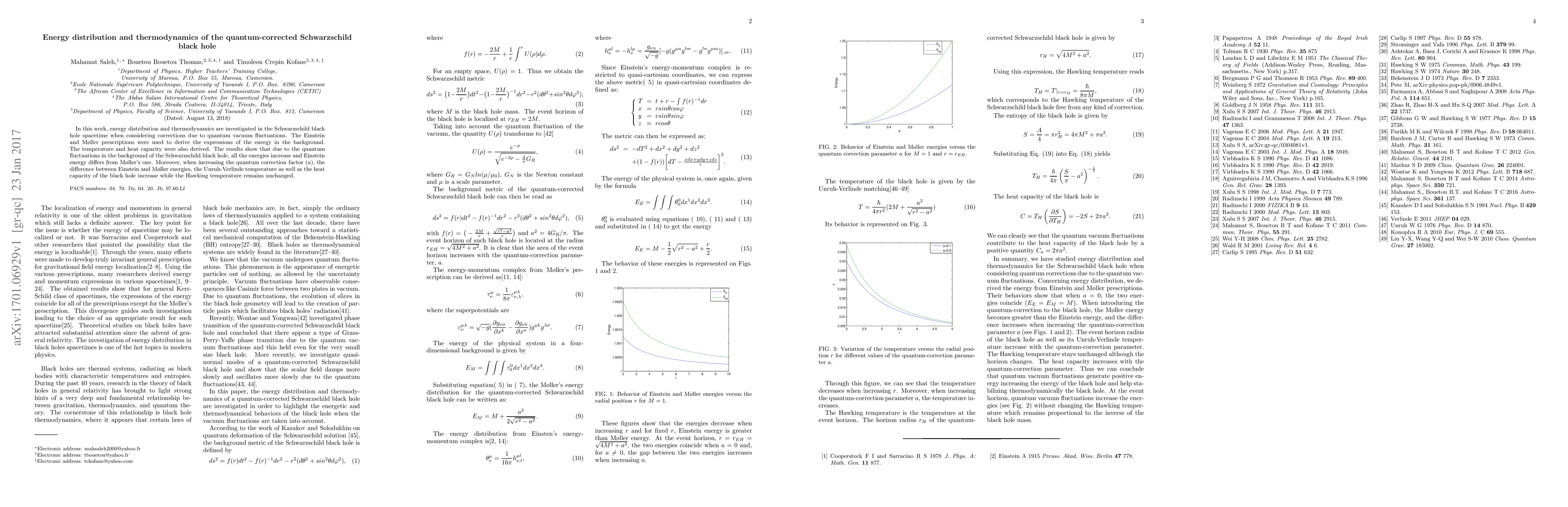 In this work, energy distribution and thermodynamics are investigated in the Schwarzschild black hole spacetime when considering corrections due to quantum vacuum fluctuations. The Einstein and M{\o}ller prescriptions were used to derive the expressions of the energy in the background. The temperature and heat capacity were also derived. The results show that due to the quantum fluctuations in the background of the Schwarzschild black hole, all the energies increase and Einstein energy differs from M{\o}ller's one. Moreover, when increasing the quantum correction factor ($a$), the difference between Einstein and M{\o}ller energies, the Unruh-Verlinde temperature as well as the heat capacity of the black hole increase while the Hawking temperature remains unchanged.