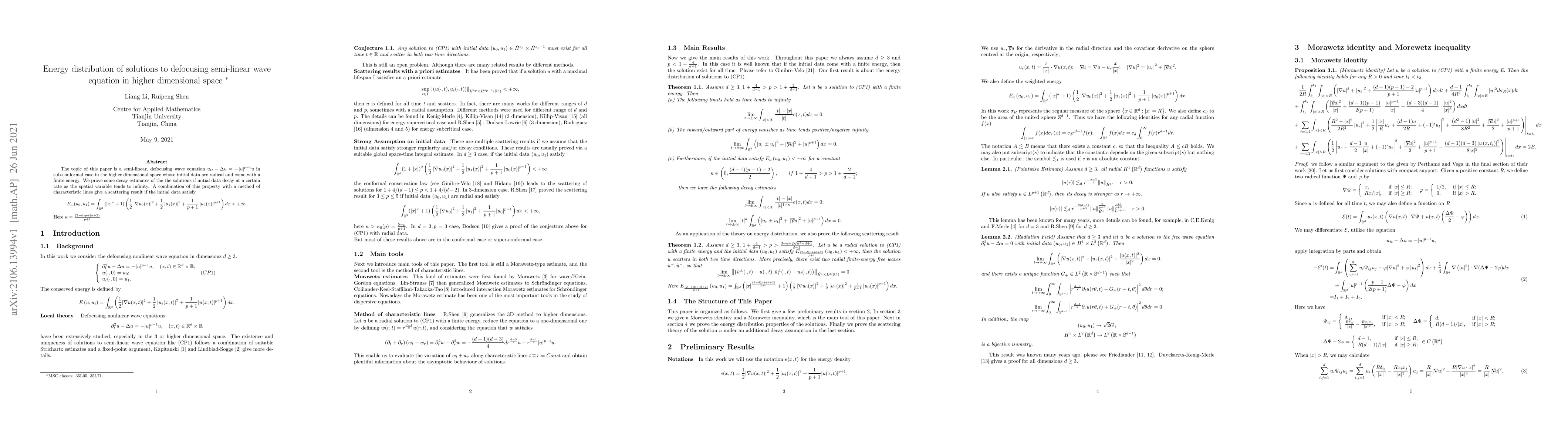 The topic of this paper is a semi-linear, defocusing wave equation $u_{t t}-\Delta u=-|u|^{p-1} u$ in sub-conformal case in the higher dimensional space whose initial data are radical and come with a finite energy. We prove some decay estimates of the the solutions if initial data decay at a certain rate as the spatial variable tends to infinity. A combination of this property with a method of characteristic lines give a scattering result if the initial data satisfy $$E_{\kappa}\left(u_{0}, u_{1}\right)=\int_{\mathbb{R}^{d}}\left(|x|^{\kappa}+1\right)\left(\frac{1}{2}\left|\nabla u_{0}(x)\right|^{2}+\frac{1}{2}\left|u_{1}(x)\right|^{2}+\frac{1}{p+1}\left|u_{0}(x)\right|^{p+1}\right) d x<+\infty.$$ Here $\kappa=\frac{(2-d)p+(d+2)}{p+1}$.