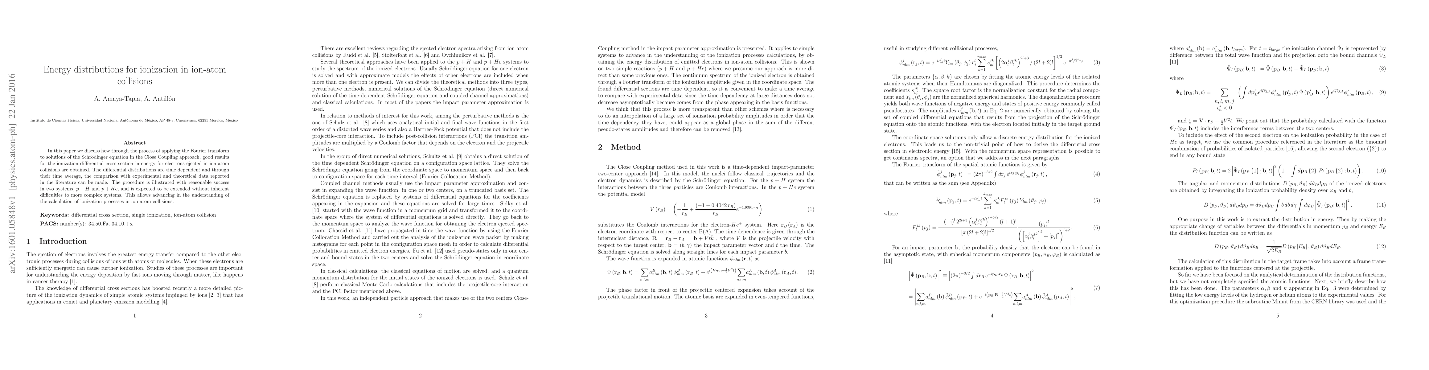 In this paper we discuss how through the process of applying the Fourier transform to solutions of the Schr\"odinger equation in the Close Coupling approach, good results for the ionization differential cross section in energy for electrons ejected in ion-atom collisions are obtained. The differential distributions are time dependent and through their time average, the comparison with experimental and theoretical data reported in the literature can be made. The procedure is illustrated with reasonable success in two systems, $p+H$ and $p+He$, and is expected to be extended without inherent difficulties to more complex systems. This allows advancing in the understanding of the calculation of ionization processes in ion-atom collisions.