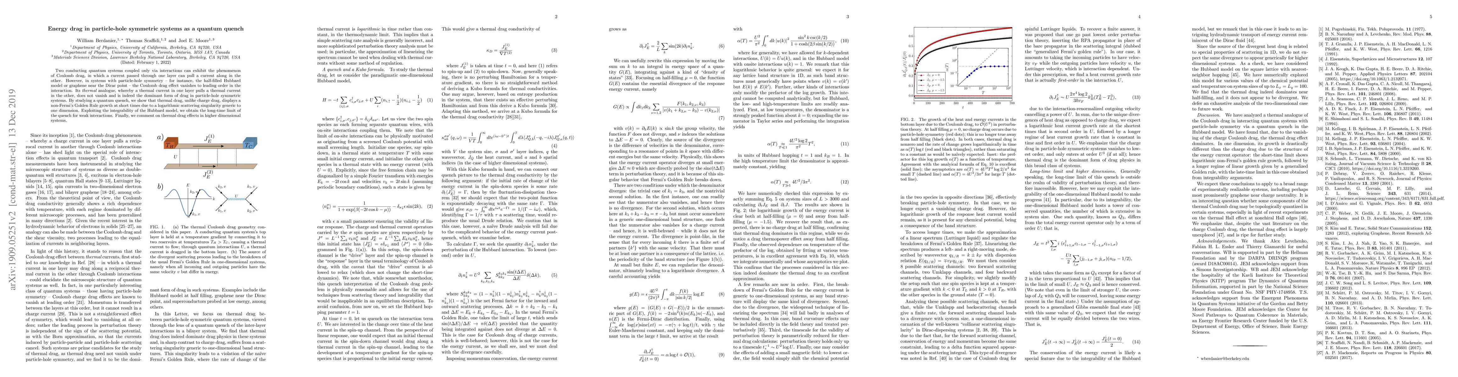 Researchers studied thermal drag in particle-hole symmetric systems, finding it grows non-Fermi's Golden Rule at short times due to a logarithmic scattering singularity, and long-time limit for weak interactions.