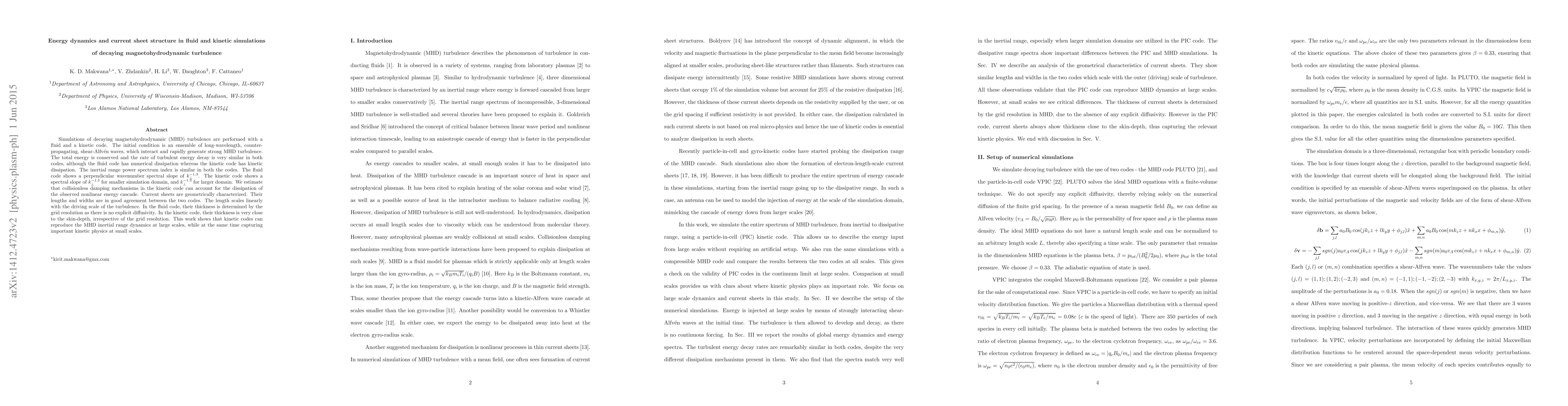 This paper compares fluid and kinetic simulations of decaying magnetohydrodynamic turbulence, finding similar energy decay rates and inertial range power spectra. Kinetic codes better capture small-scale kinetic effects, with current sheets' thicknesses aligning closely with the skin-depth. Both codes agree on current sheet lengths, which scale linearly with the turbulence's driving scale.