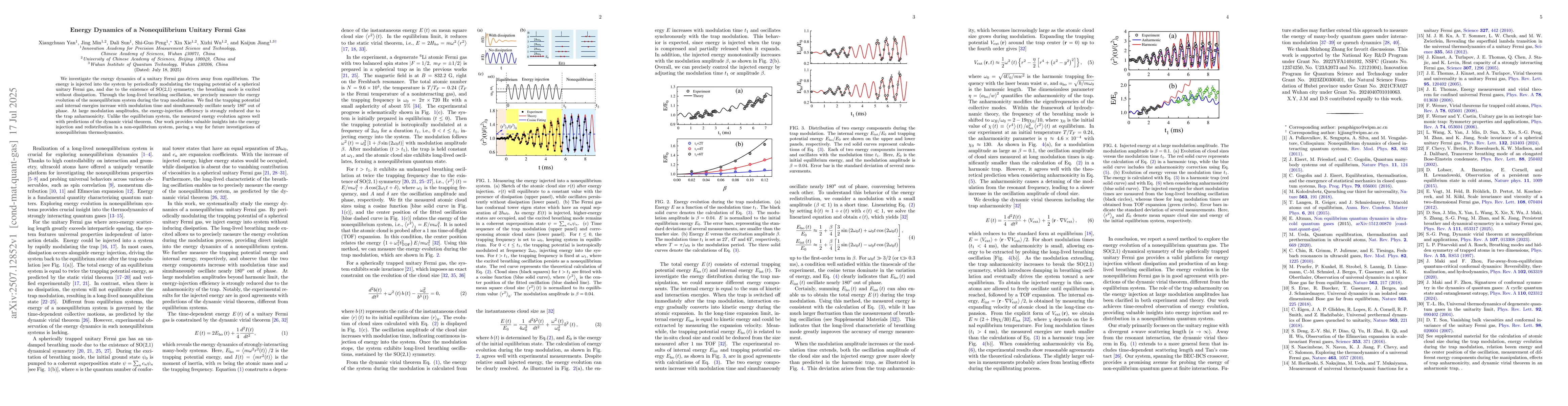 We investigate the energy dynamics of a unitary Fermi gas driven away from equilibrium. The energy is injected into the system by periodically modulating the trapping potential of a spherical unitary Fermi gas, and due to the existence of SO(2,1) symmetry, the breathing mode is excited without dissipation. Through the long-lived breathing oscillation, we precisely measure the energy evolution of the nonequilibrium system during the trap modulation. We find the trapping potential and internal energies increase with modulation time and simultaneously oscillate nearly $\textrm{180}^{\textrm{o}}$ out of phase. At large modulation amplitudes, the energy-injection efficiency is strongly reduced due to the trap anharmonicity. Unlike the equilibrium system, the measured energy evolution agrees well with predictions of the dynamic virial theorem. Our work provides valuable insights into the energy injection and redistribution in a non-equilibrium system, paving a way for future investigations of nonequilibrium thermodynamics.