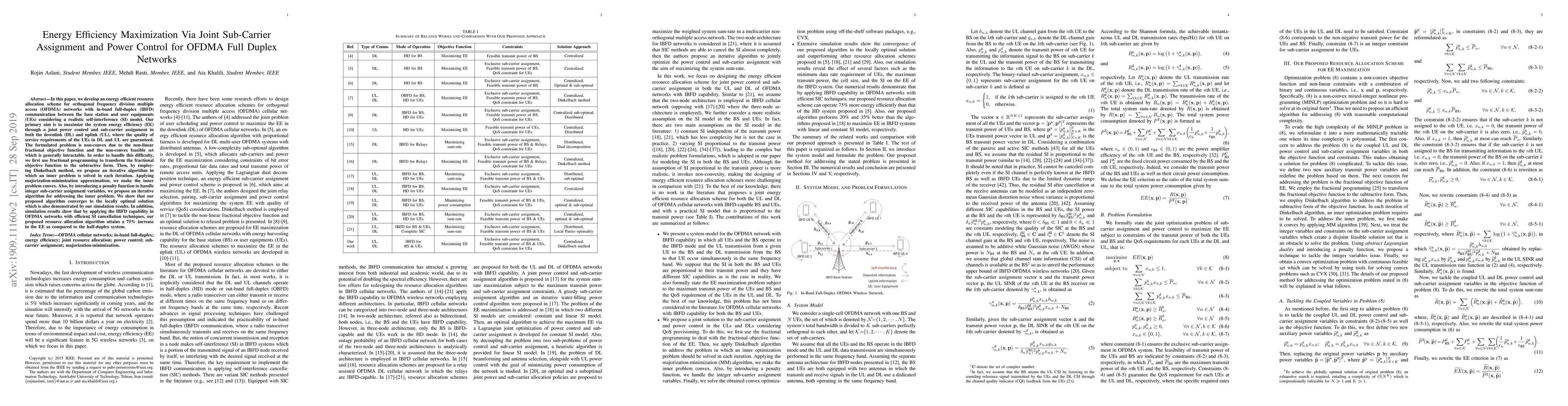 In this paper, we develop an energy efficient resource allocation scheme for orthogonal frequency division multiple access (OFDMA) networks with in-band full-duplex (IBFD) communication between the base station and user equipments (UEs) considering a realistic self-interference (SI) model. Our primary aim is to maximize the system energy efficiency (EE) through a joint power control and sub-carrier assignment in both the downlink (DL) and uplink (UL), where the quality of service requirements of the UEs in DL and UL are guaranteed. The formulated problem is non-convex due to the non-linear fractional objective function and the non-convex feasible set which is generally intractable. In order to handle this difficulty, we first use fractional programming to transform the fractional objective function to the subtractive form. Then, by employing Dinkelbach method, we propose an iterative algorithm in which an inner problem is solved in each iteration. Applying majorization-minimization approximation, we make the inner problem convex. Also, by introducing a penalty function to handle integer sub-carrier assignment variables, we propose an iterative algorithm for addressing the inner problem. We show that our proposed algorithm converges to the locally optimal solution which is also demonstrated by our simulation results. In addition, simulation results show that by applying the IBFD capability in OFDMA networks with efficient SI cancellation techniques, our proposed resource allocation algorithm attains a 75% increase in the EE as compared to the half-duplex system.