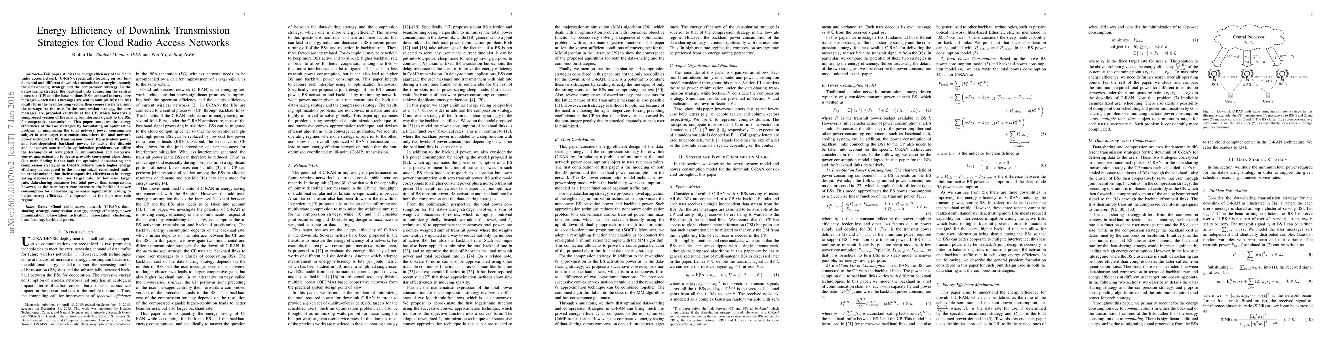 This paper evaluates the energy efficiency of two downlink transmission strategies in cloud radio access networks (C-RAN): data-sharing and compression. It finds that both strategies outperform non-optimized transmission but their effectiveness varies with user target rates, with data-sharing being more efficient at low rates and compression at higher rates.
